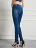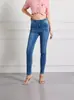 Jeans Feminino Transfronteiriço 2025 Slim Cintura Alta Alta Elasticidade Europeu e Americano Calças de Boca Pequena Tamanho Plus Calças Básicas Femininas