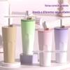 Amazon Copo de Aço Inoxidável Copo Térmico Spray de Plástico Manipulador de Grande Capacidade Vácuo Copo Portátil Ao Ar Livre Esporte