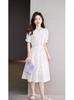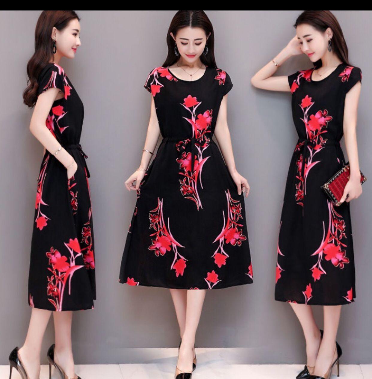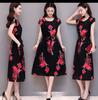 Verão manga curta novo vestido feminino de comprimento médio 2020 nova manga curta slim slim slimming floral saia moda