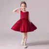 Vestido Infantil 2026 Primavera Novo Vermelho Saia Bufante Pequeno Apresentador Vestido para Performance de Piano Vestido Princesa para Meninas