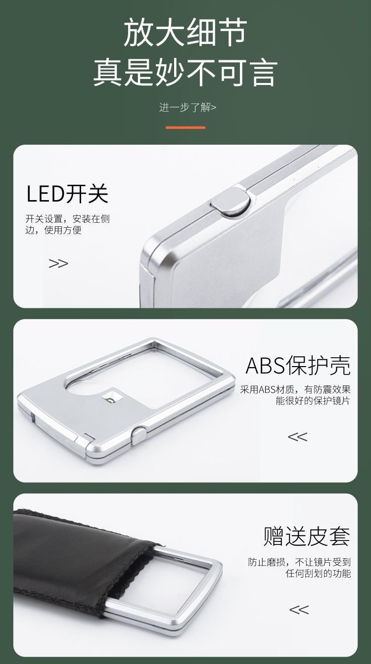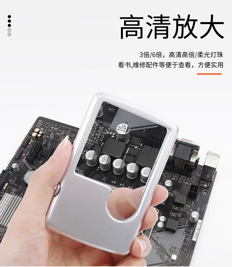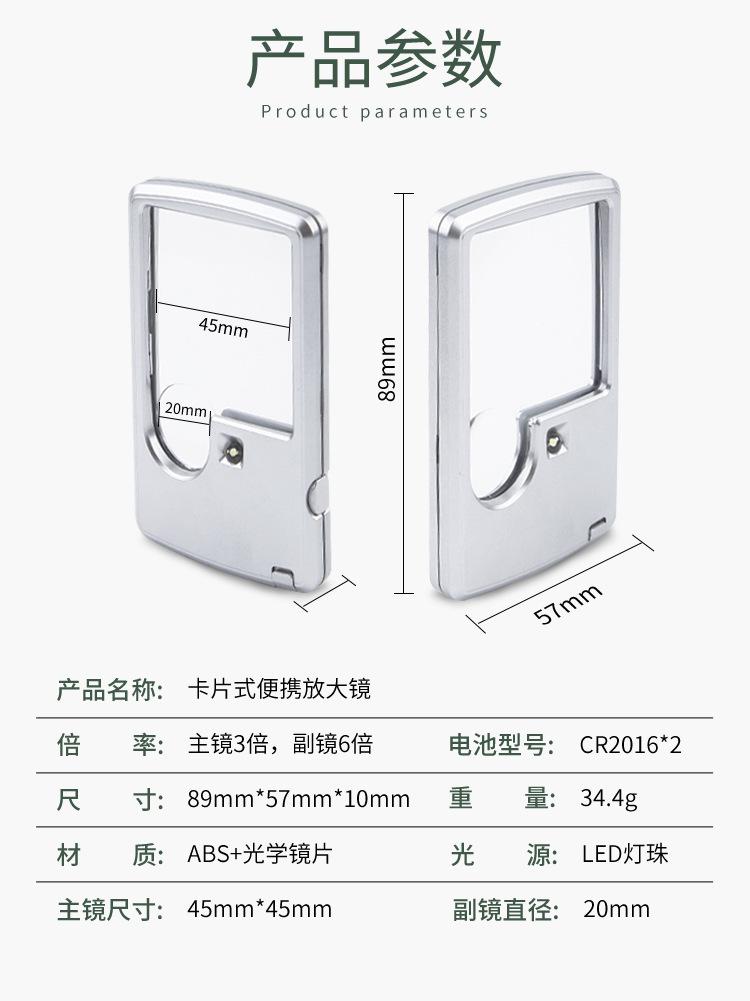 Lupa quadrada para idosos lendo LED Luz Ultra-fina Submaster Mirror Card Lupa portátil para cabelo