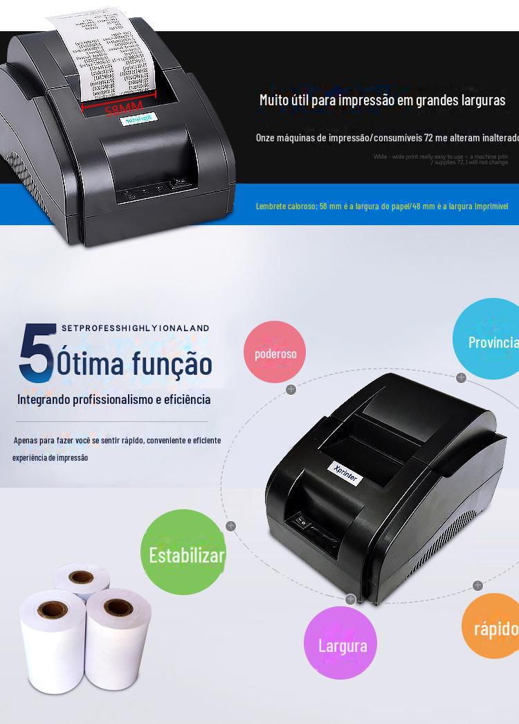 Este produto é uma impressora de recibos da marca Xinye com largura de 58mm e pode ser conectada a um computador via USB!