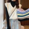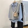 Colete de Malha Vintage com Decote V para Mulheres Outono e Inverno Roupas Externas Estilo Universitário Solto Roupas Externas Empilhadas Outono e Inverno Colete de Suéter Torcido