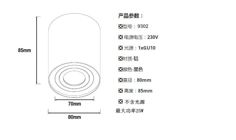 O holofote de superfície GU10 pode substituir o kit de lâmpada de ângulo ajustável sem furos de fonte de luz MR16