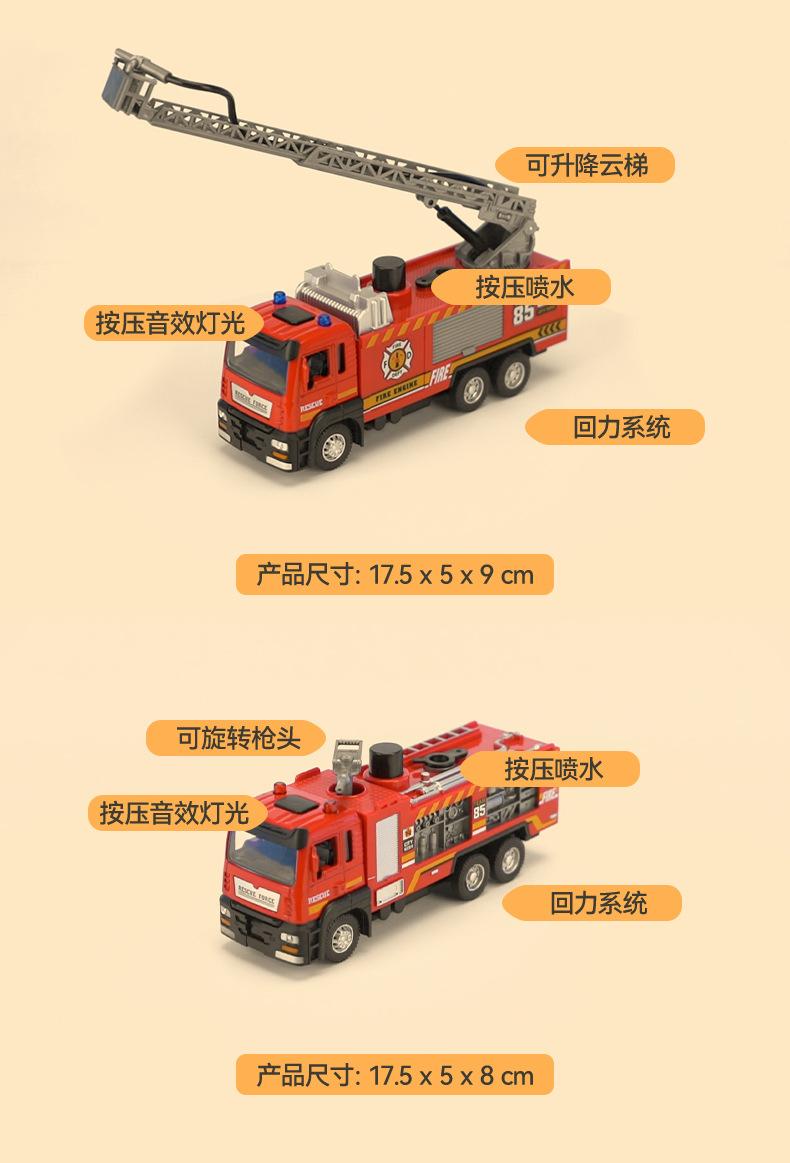 TY# plastic water tanker, TY# plastic ladder car, TY# alloy fire truck, TY# alloy ladder car