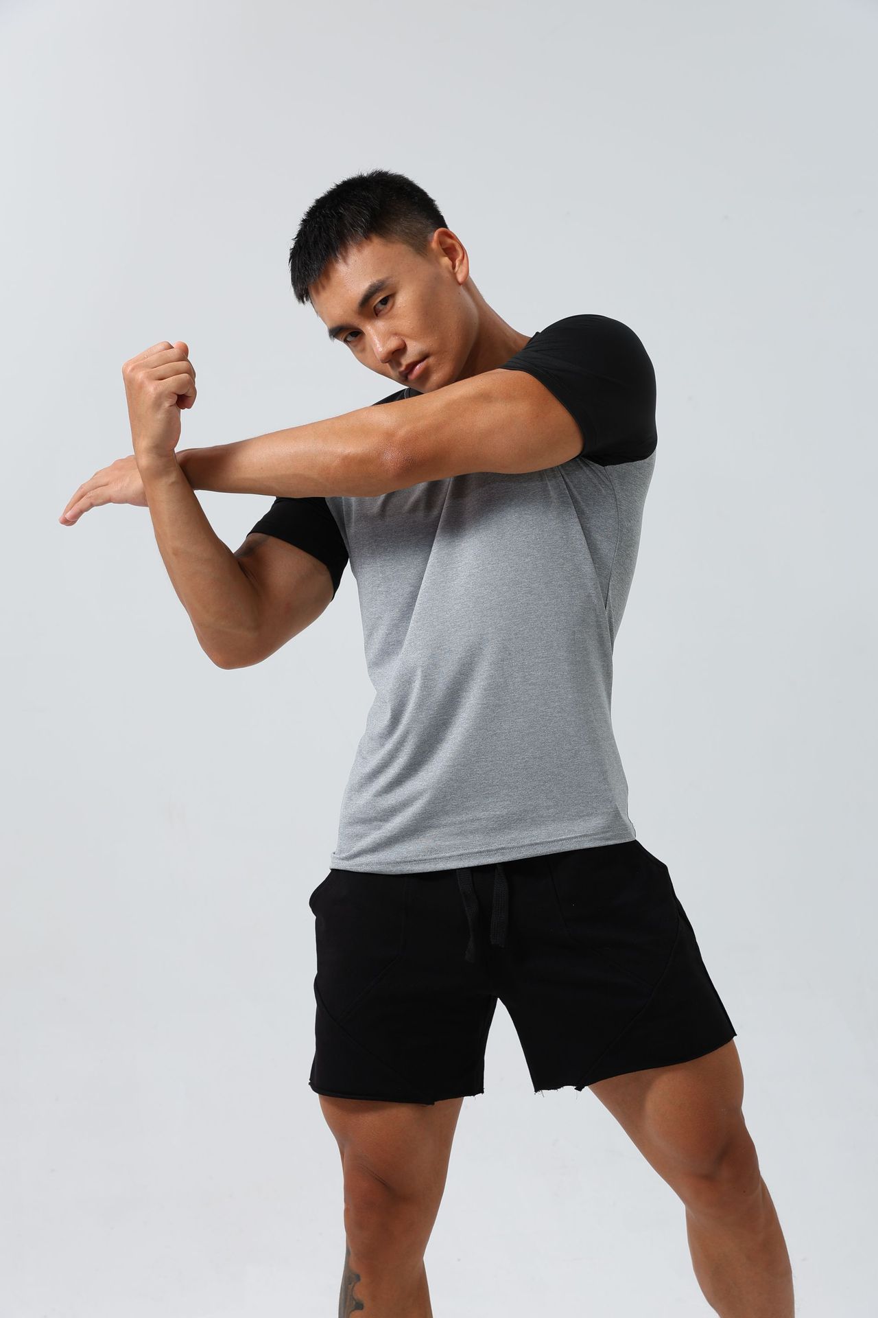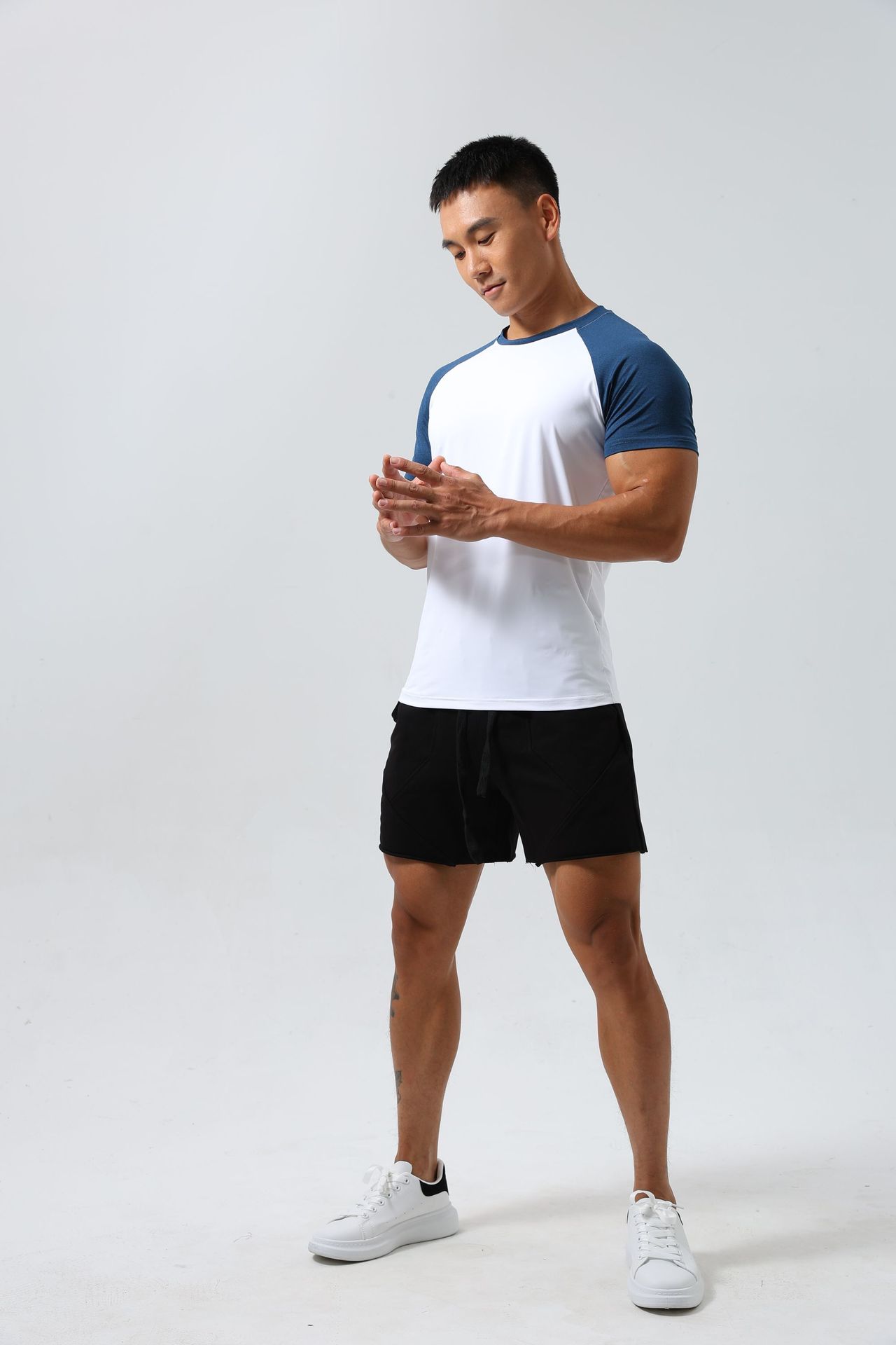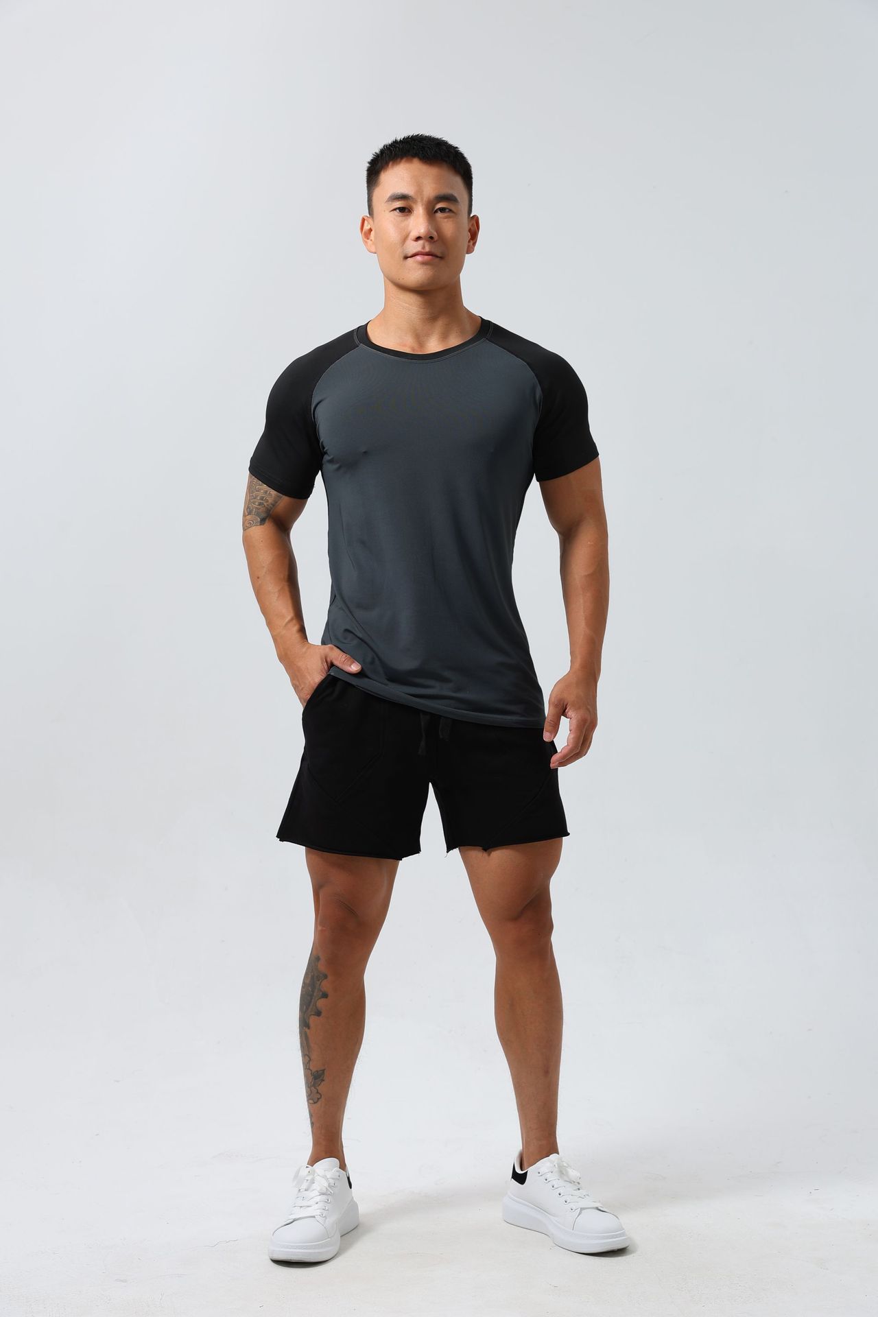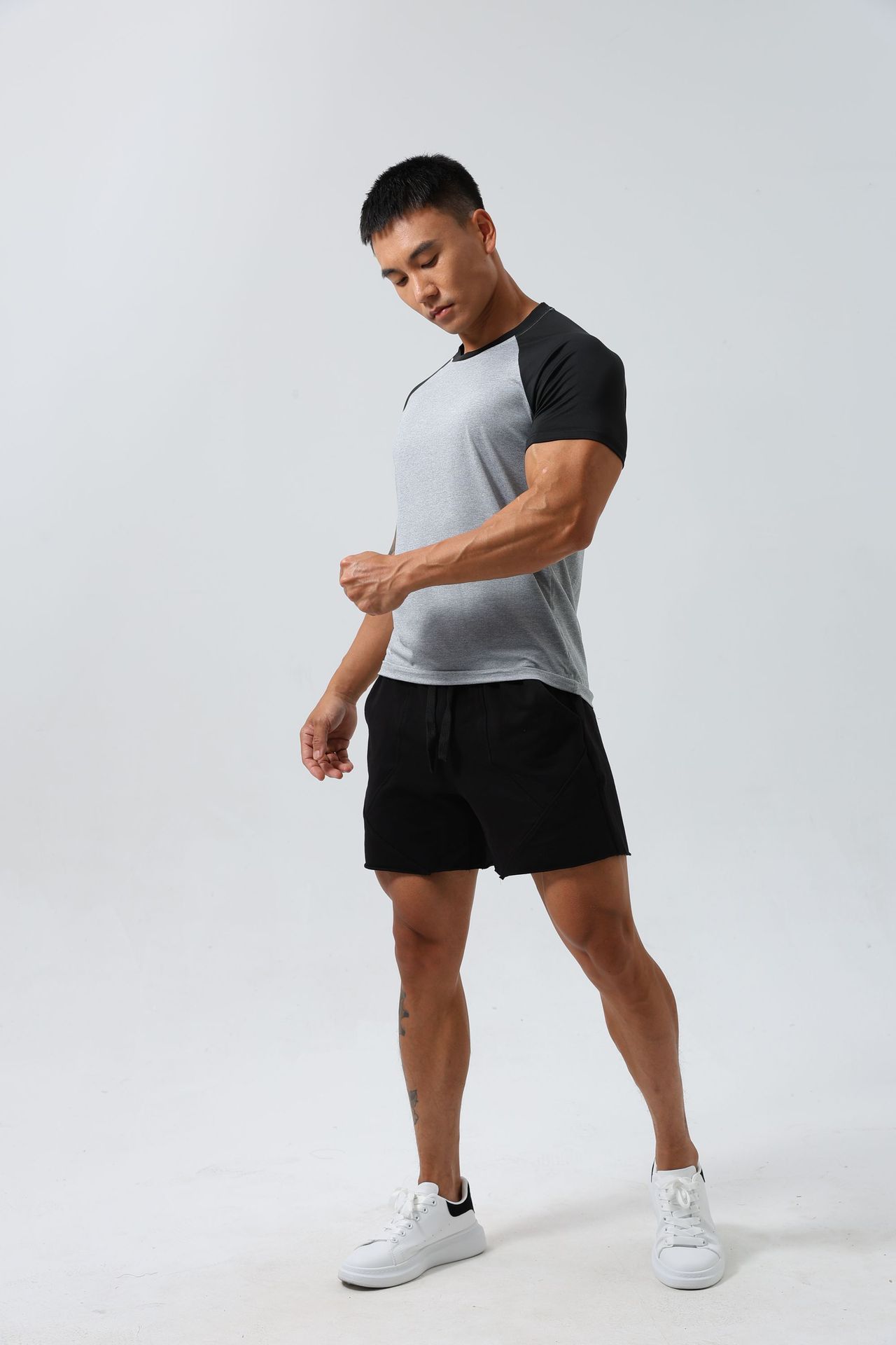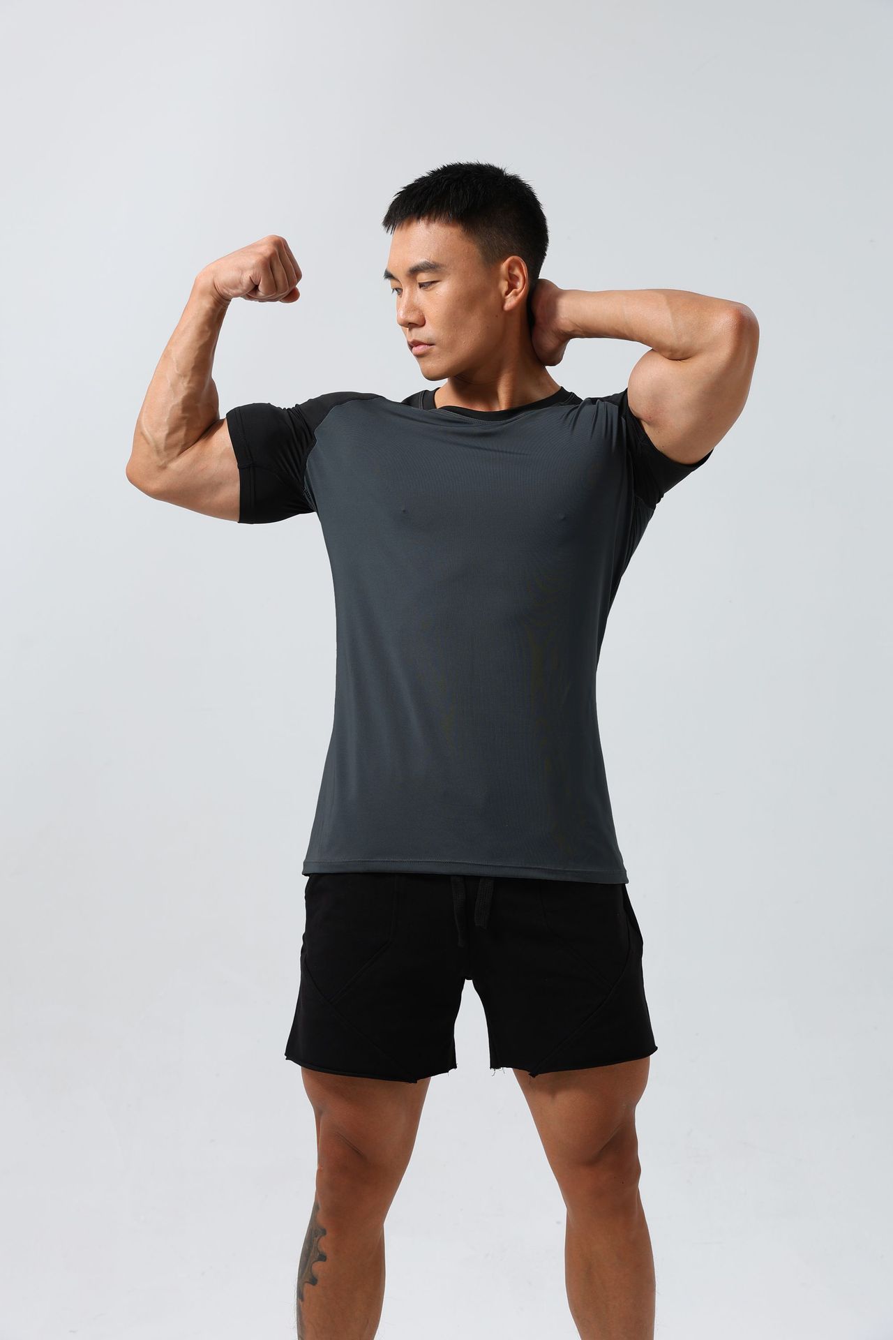 Fitness Secagem rápida Manga curta Masculino Super-elástico Respirável Cor Combinando Manga Curta