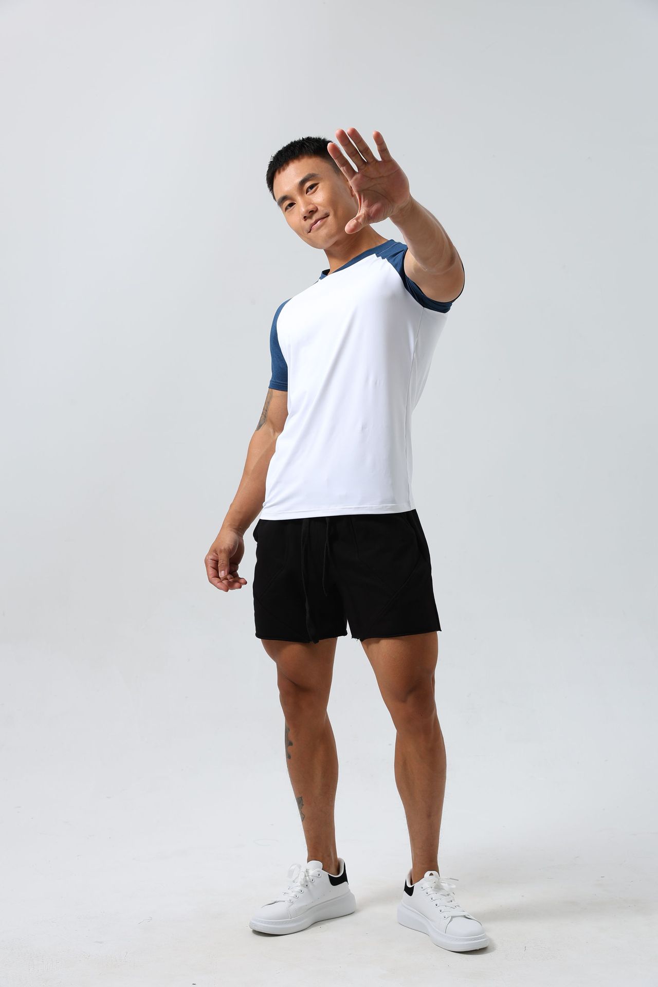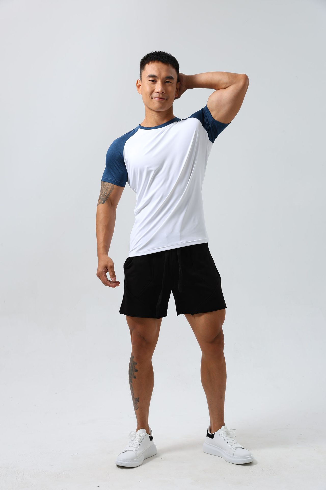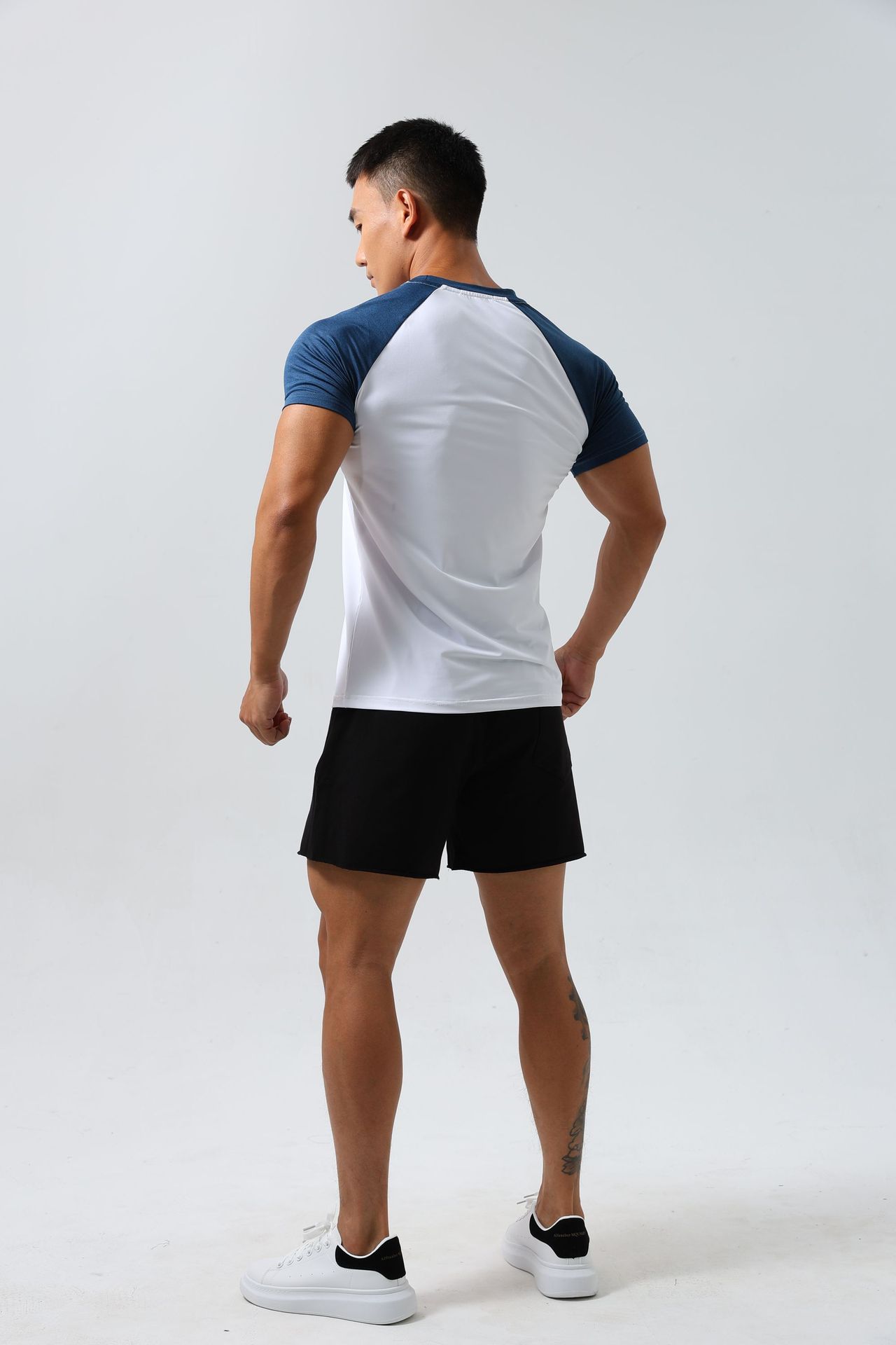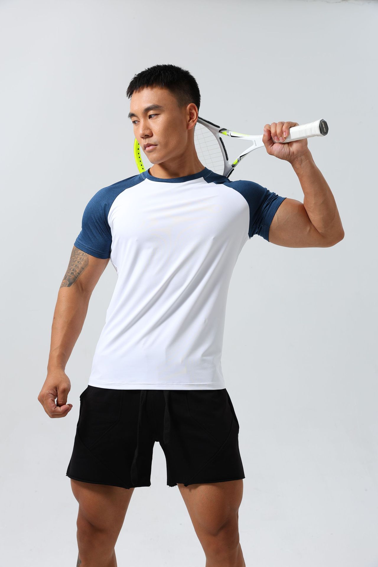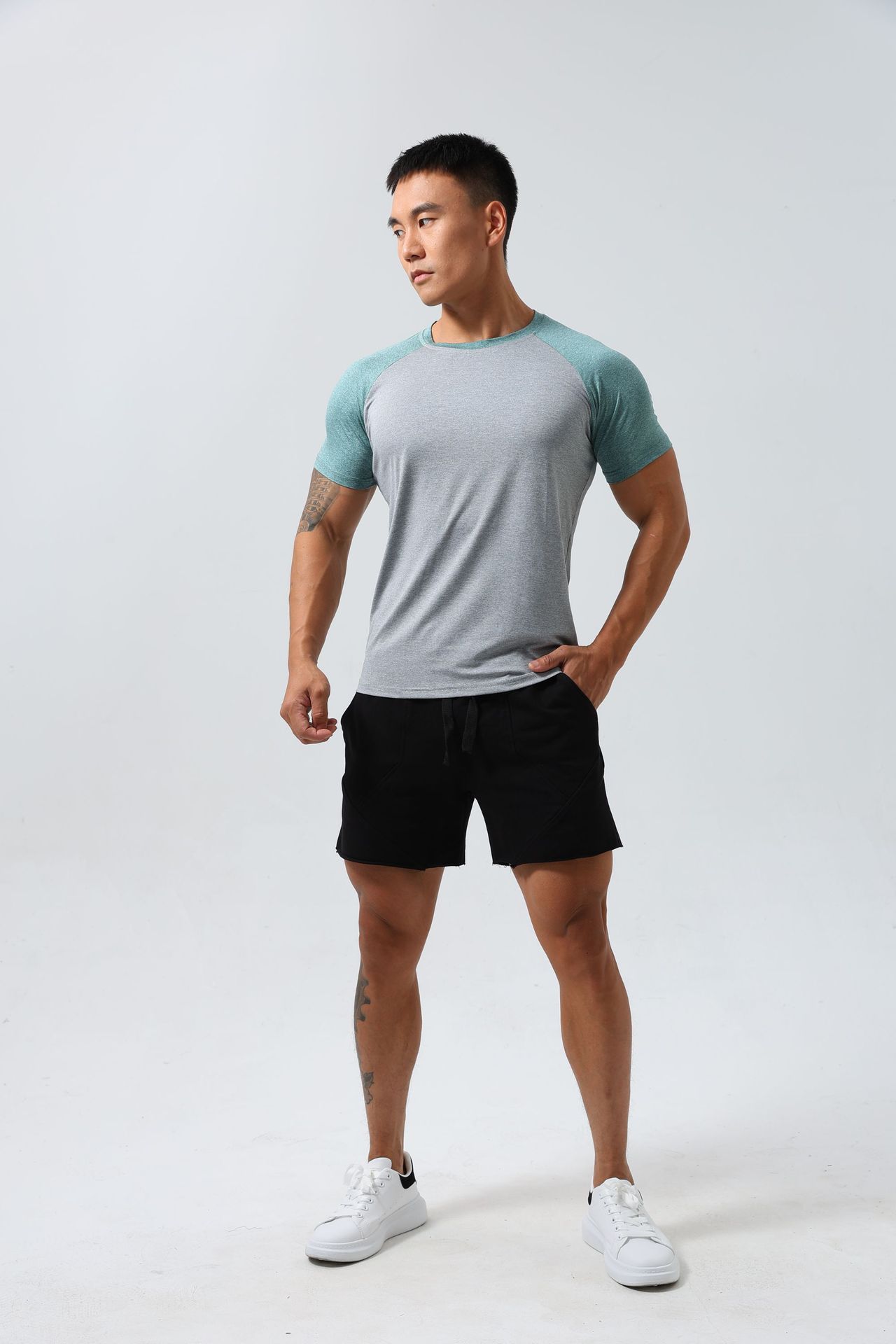 Fitness Secagem rápida Manga curta Masculino Super-elástico Respirável Cor Combinando Manga Curta