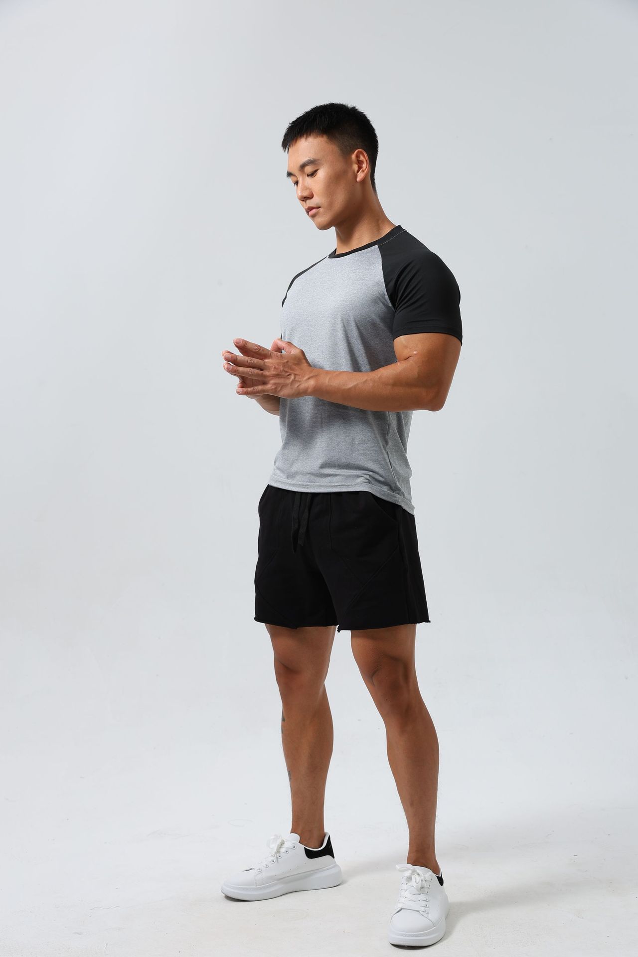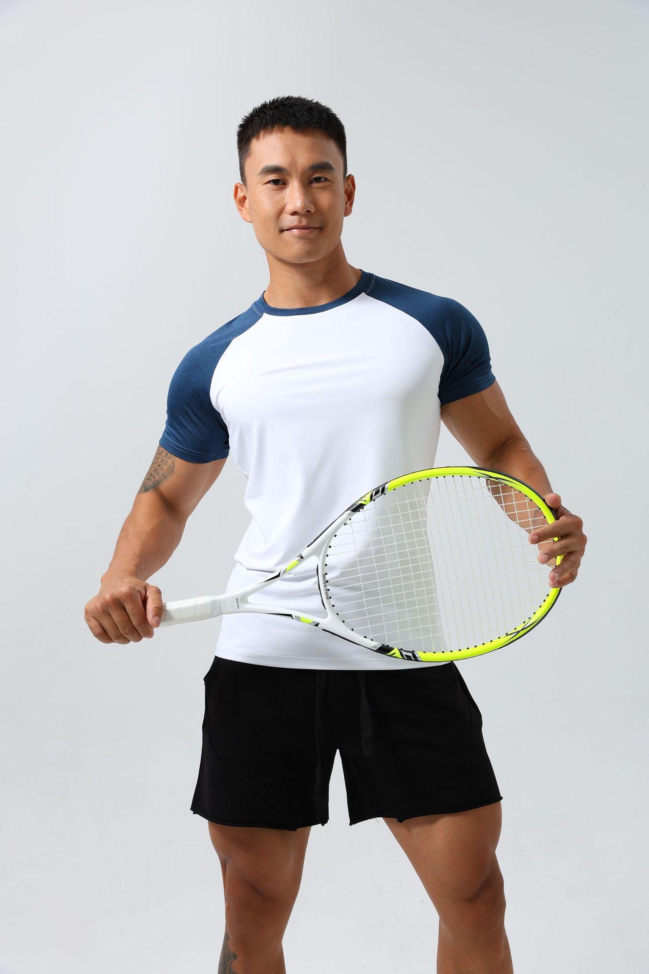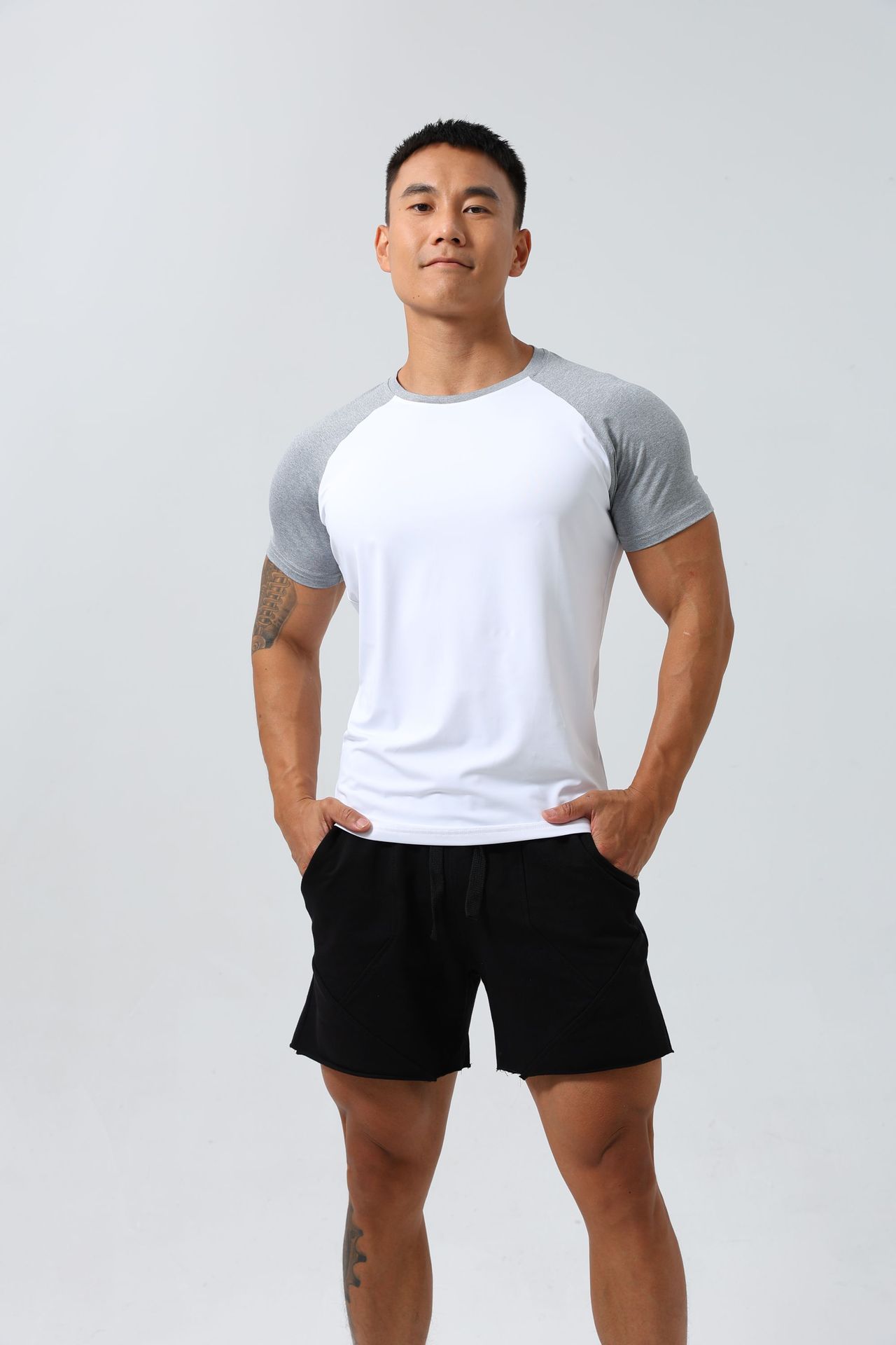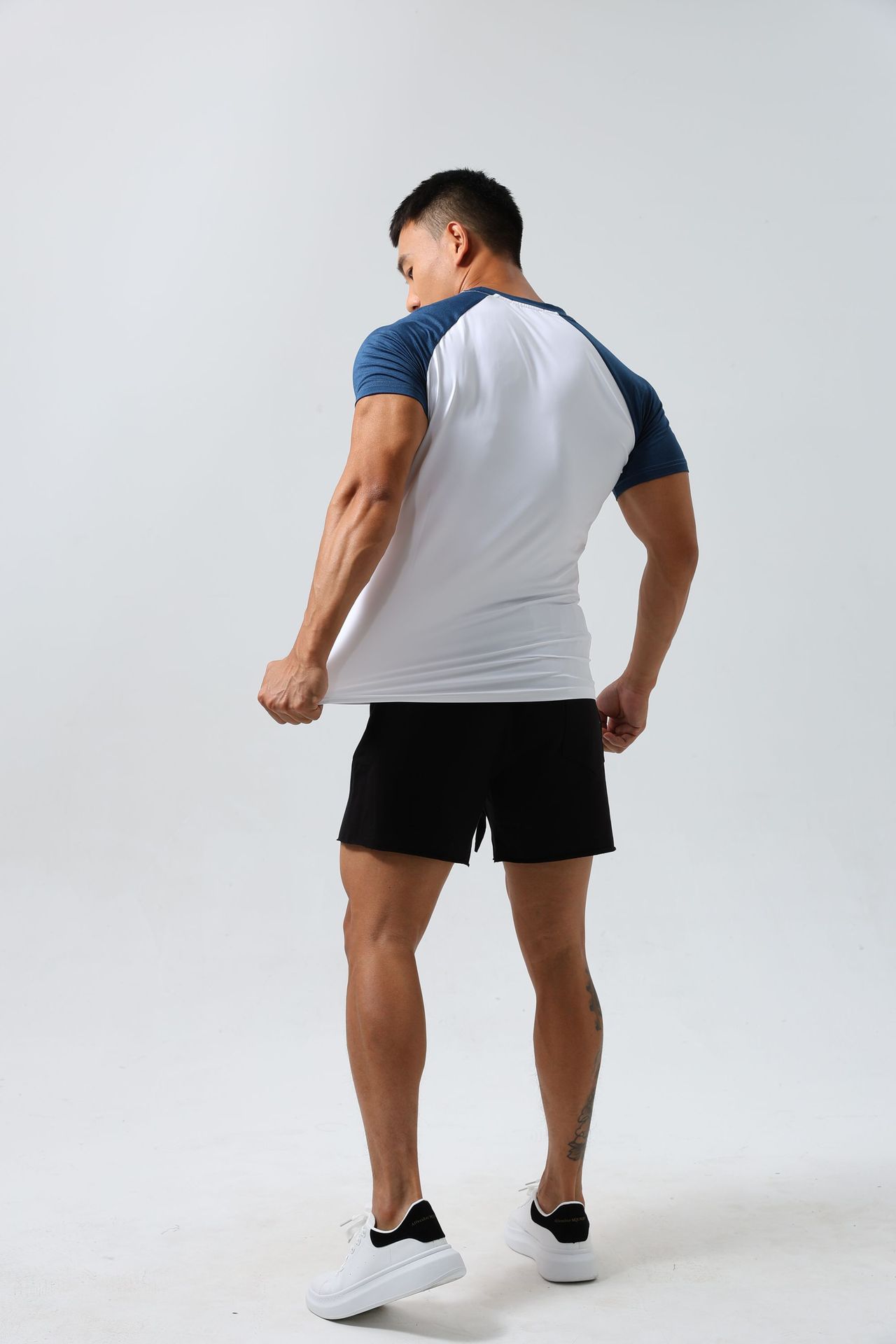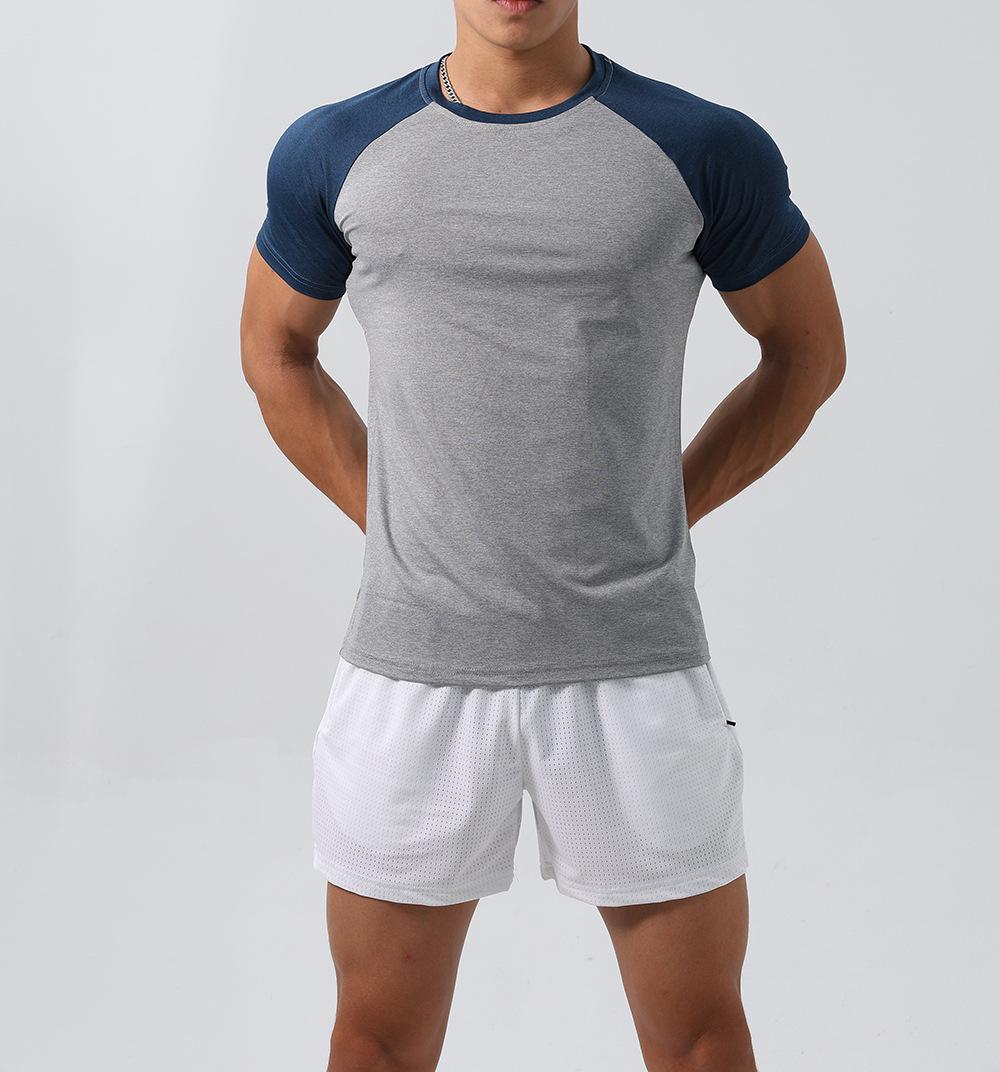 Fitness Secagem rápida Manga curta Masculino Super-elástico Respirável Cor Combinando Manga Curta