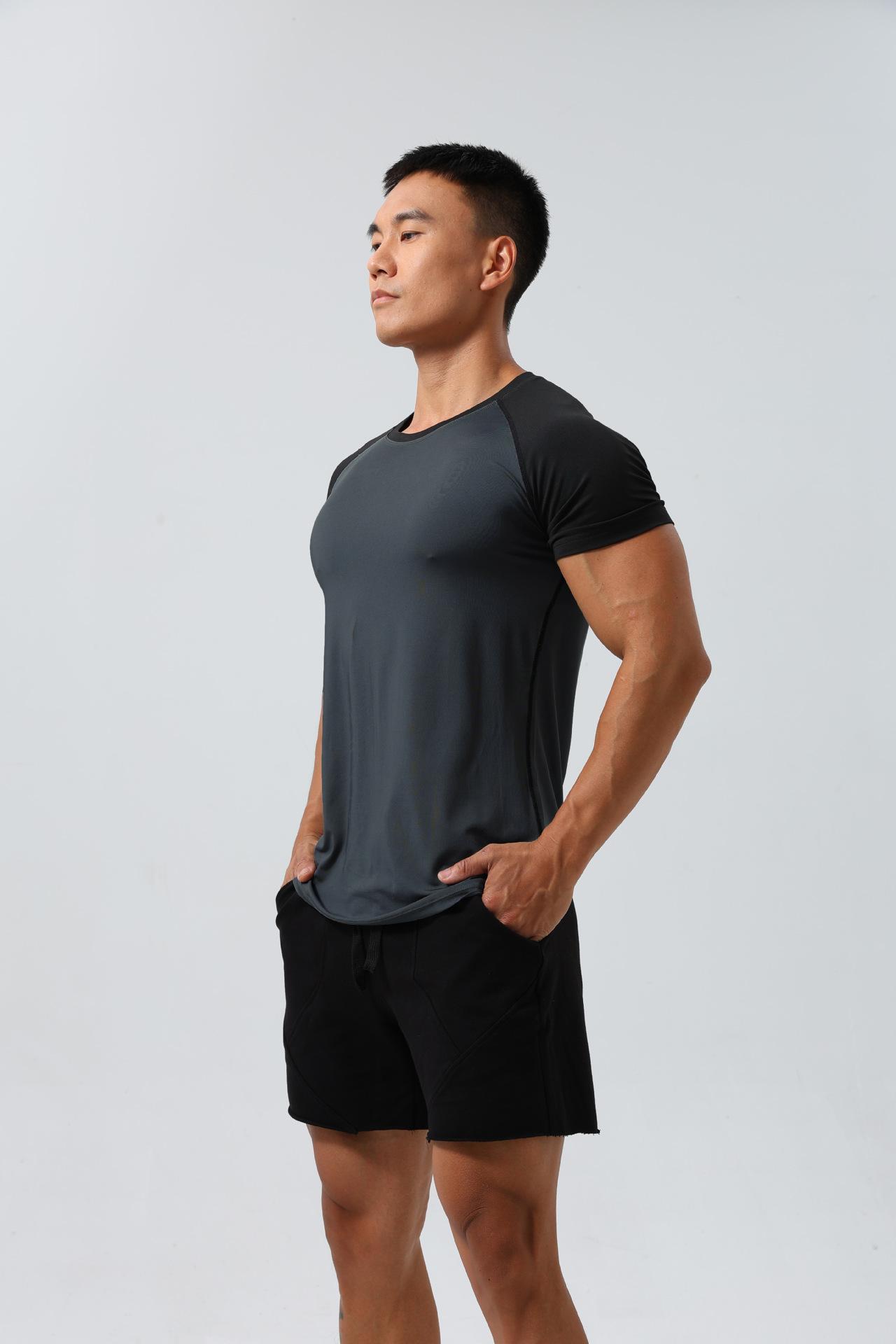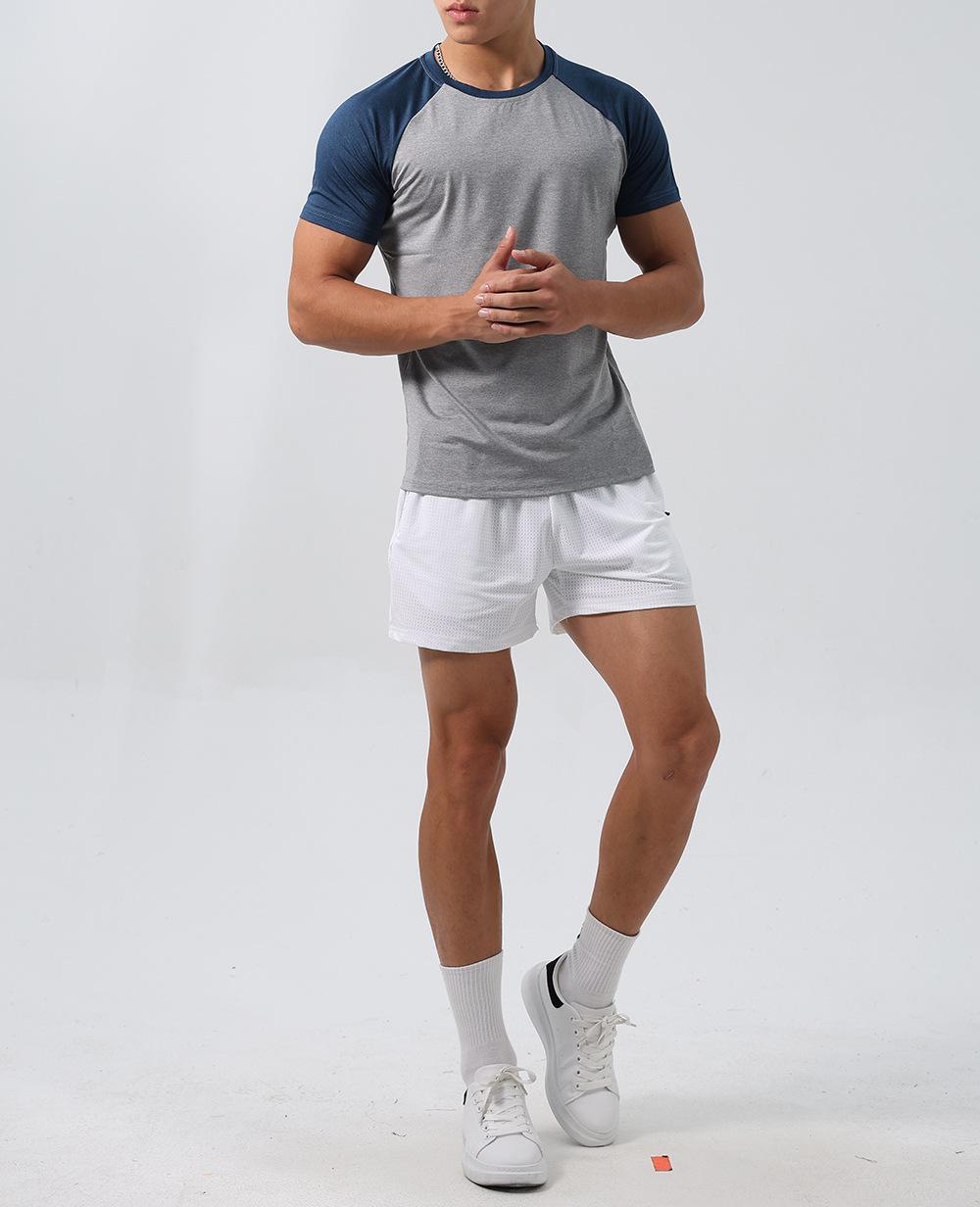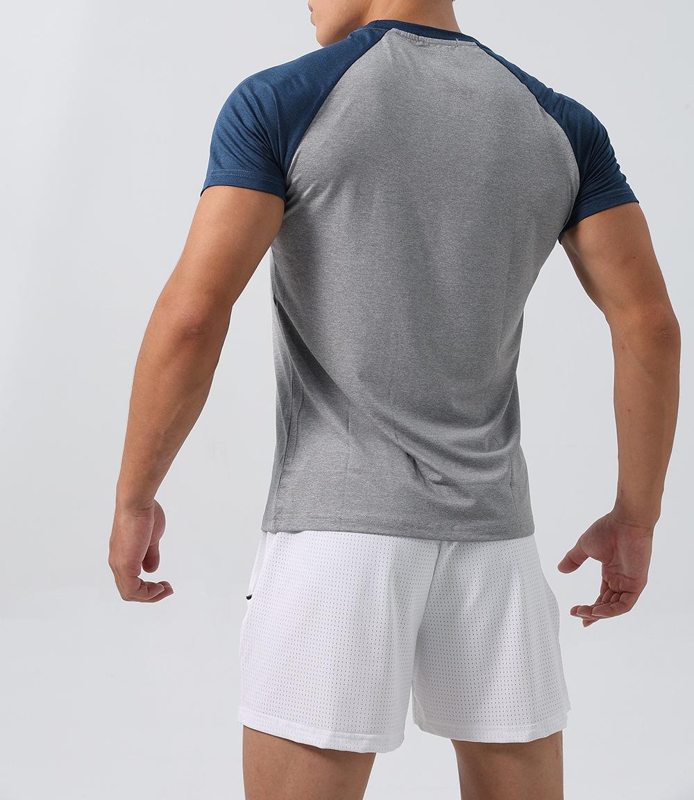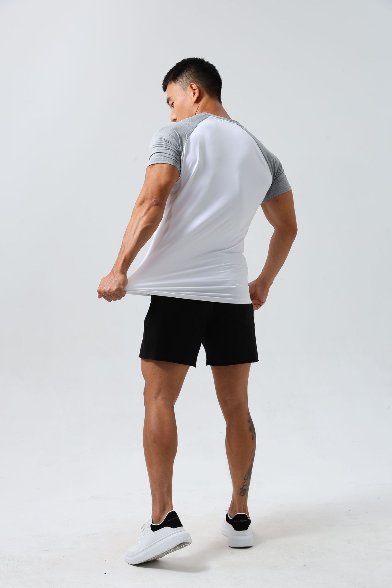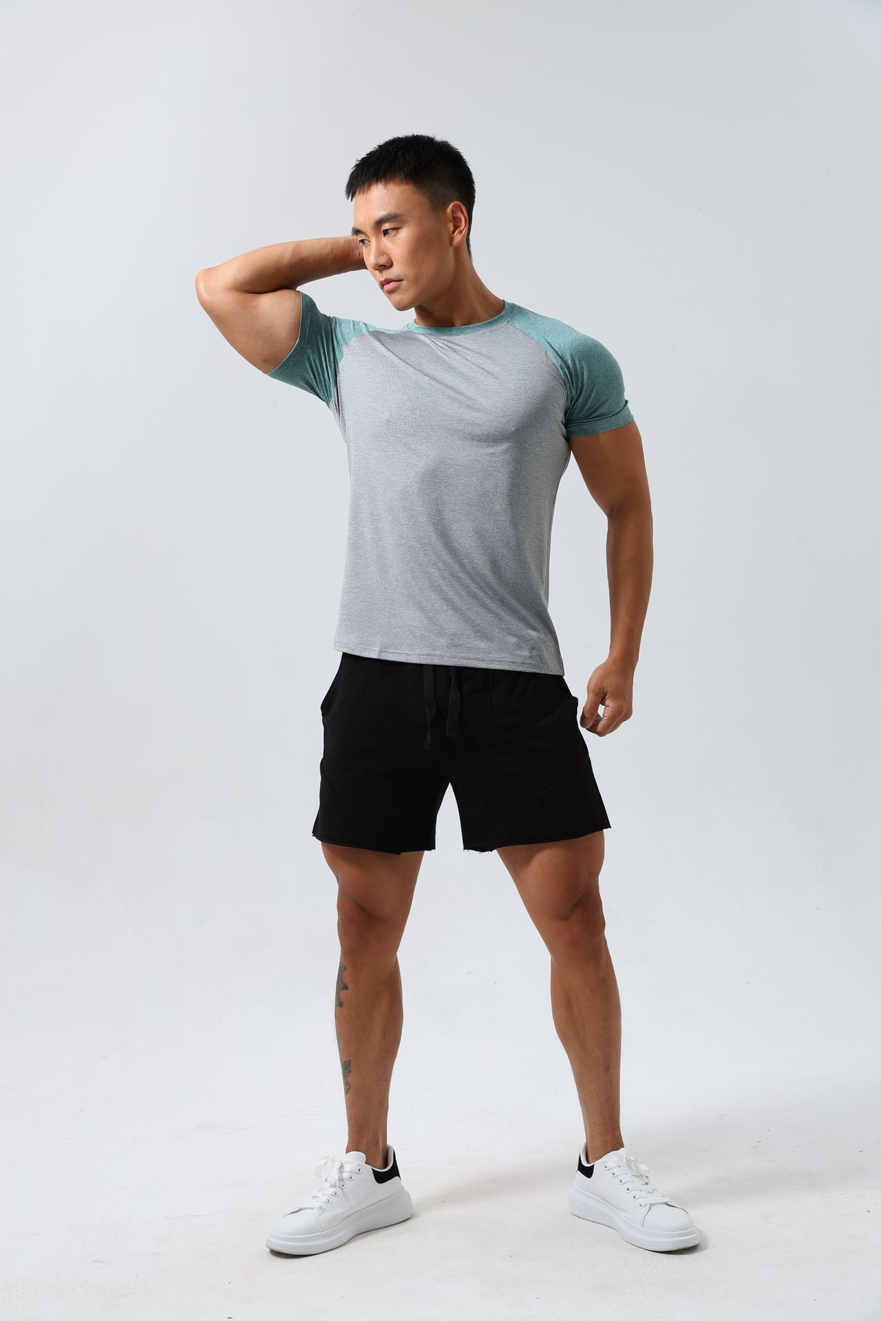 Fitness Secagem rápida Manga curta Masculino Super-elástico Respirável Cor Combinando Manga Curta