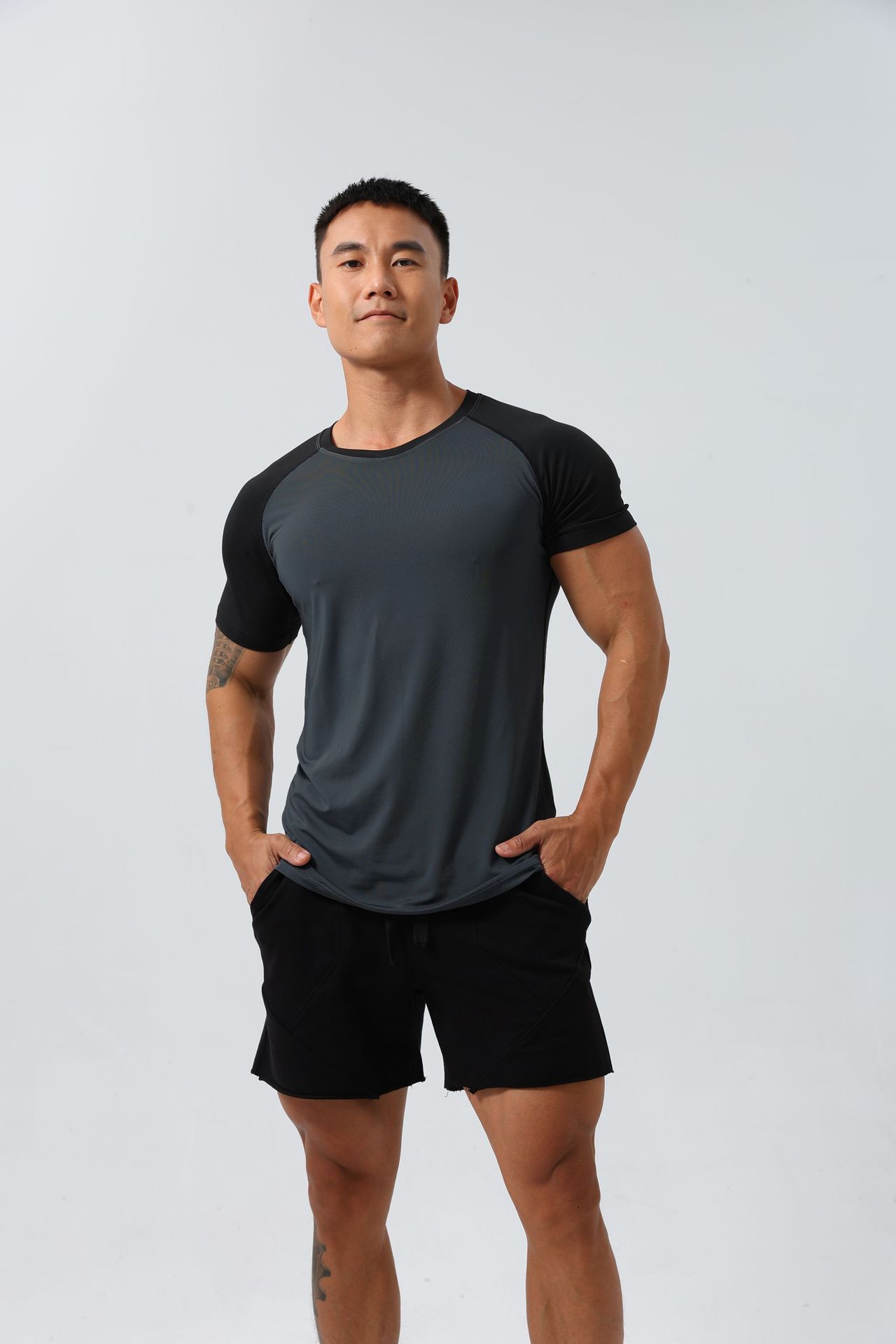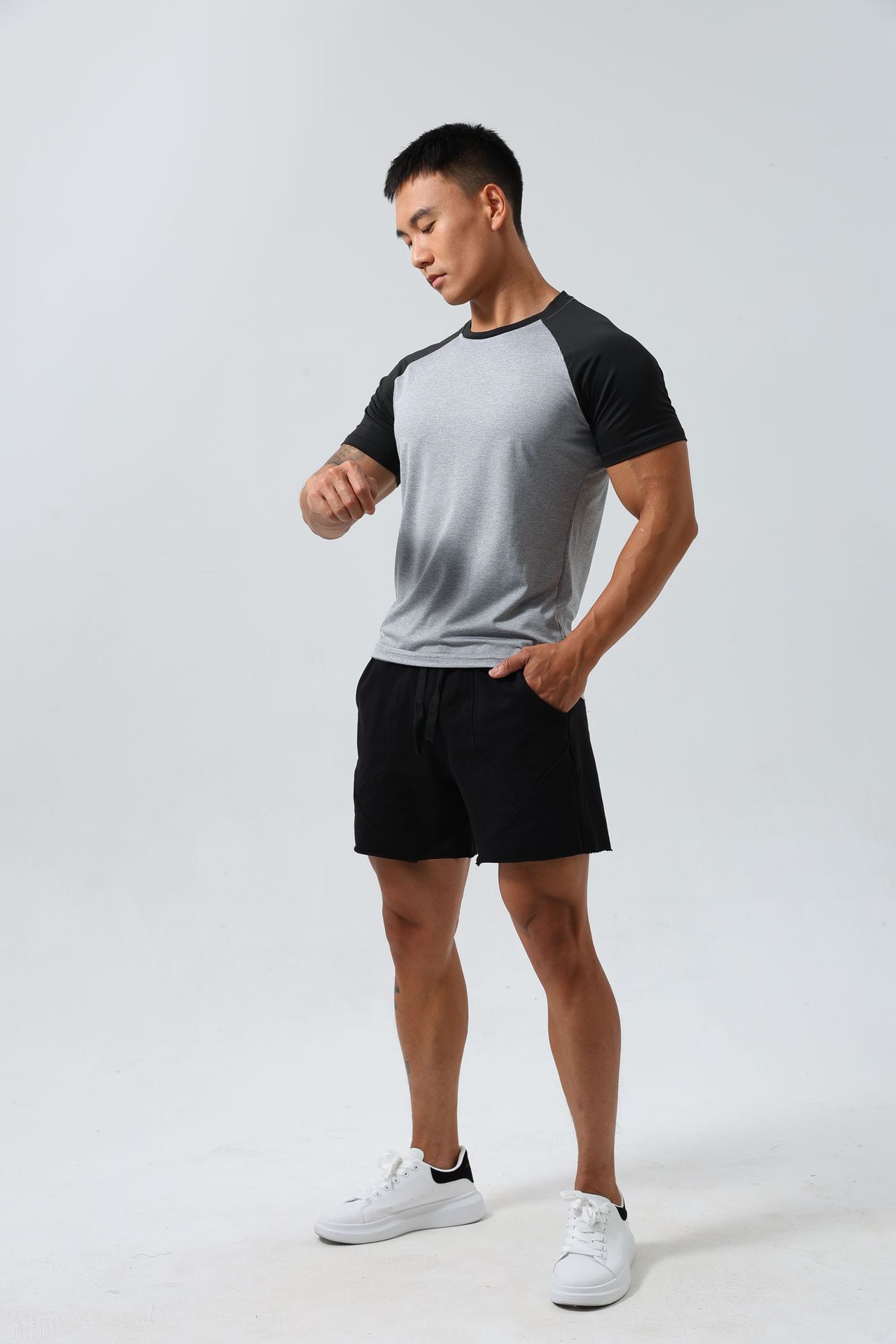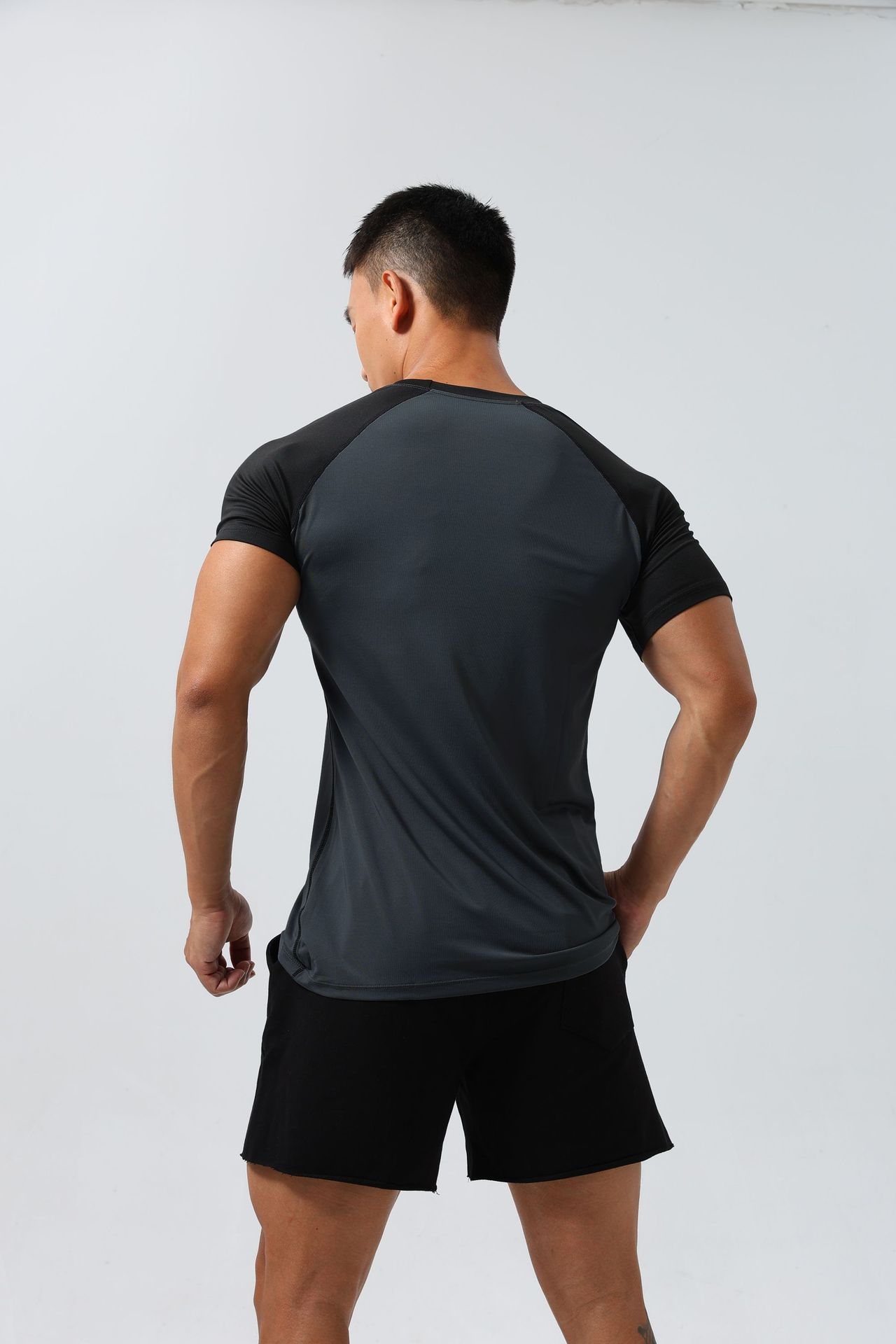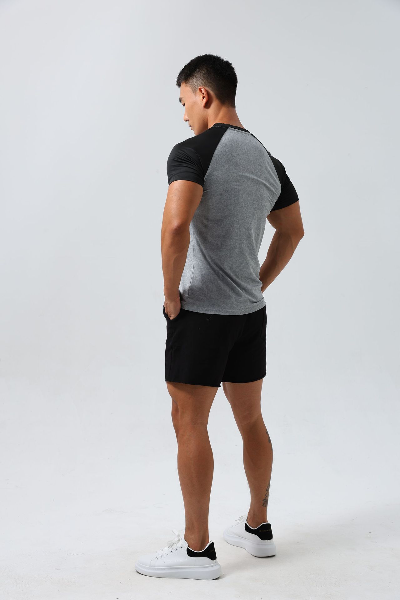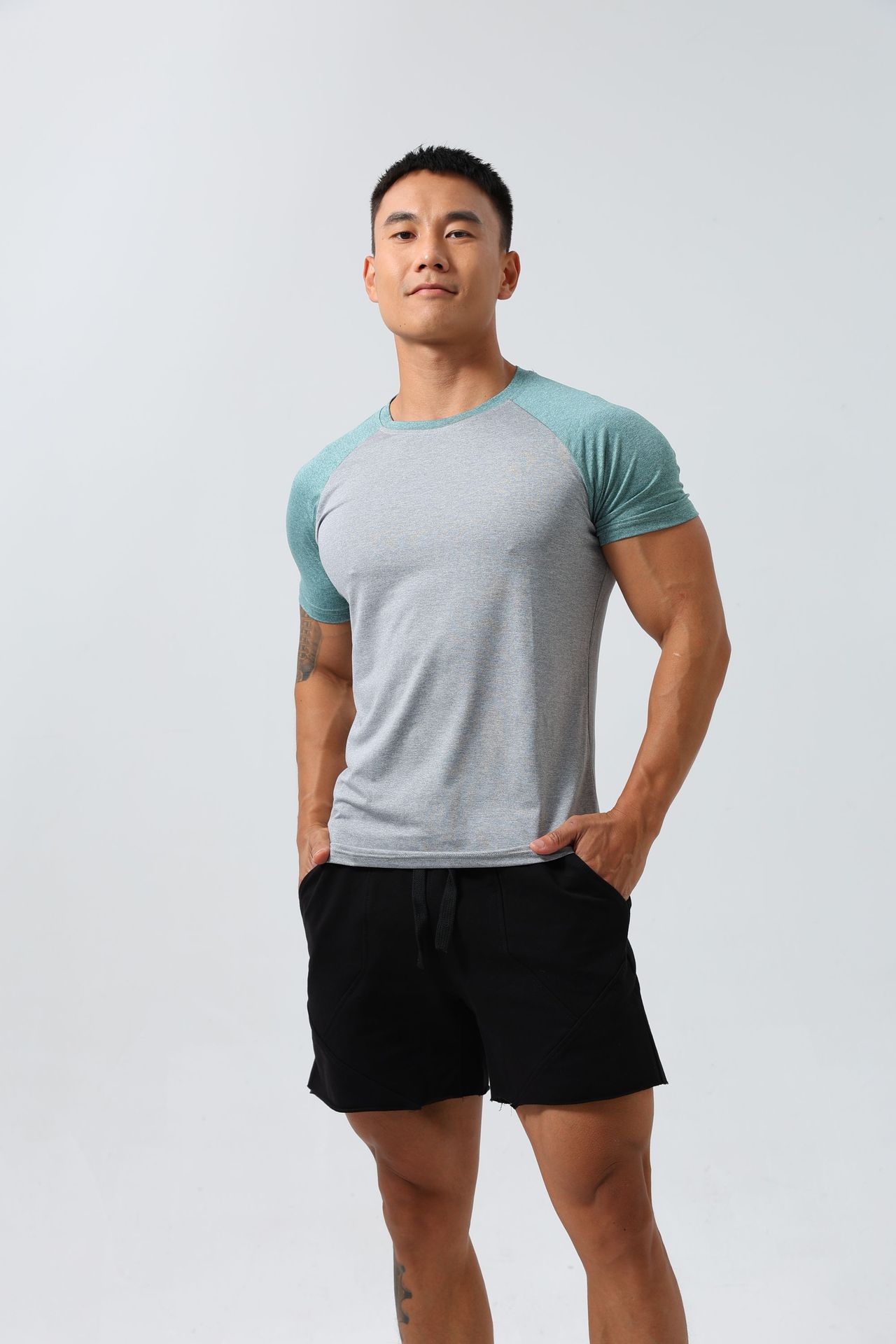 Fitness Secagem rápida Manga curta Masculino Super-elástico Respirável Cor Combinando Manga Curta