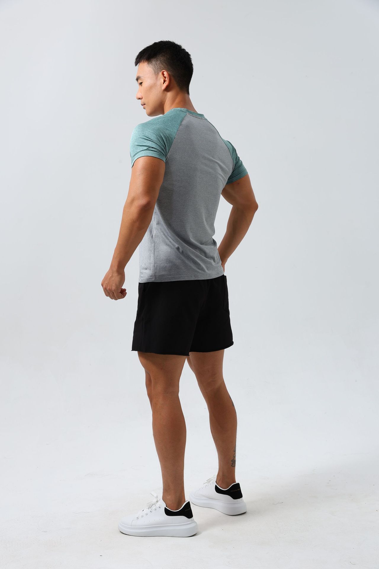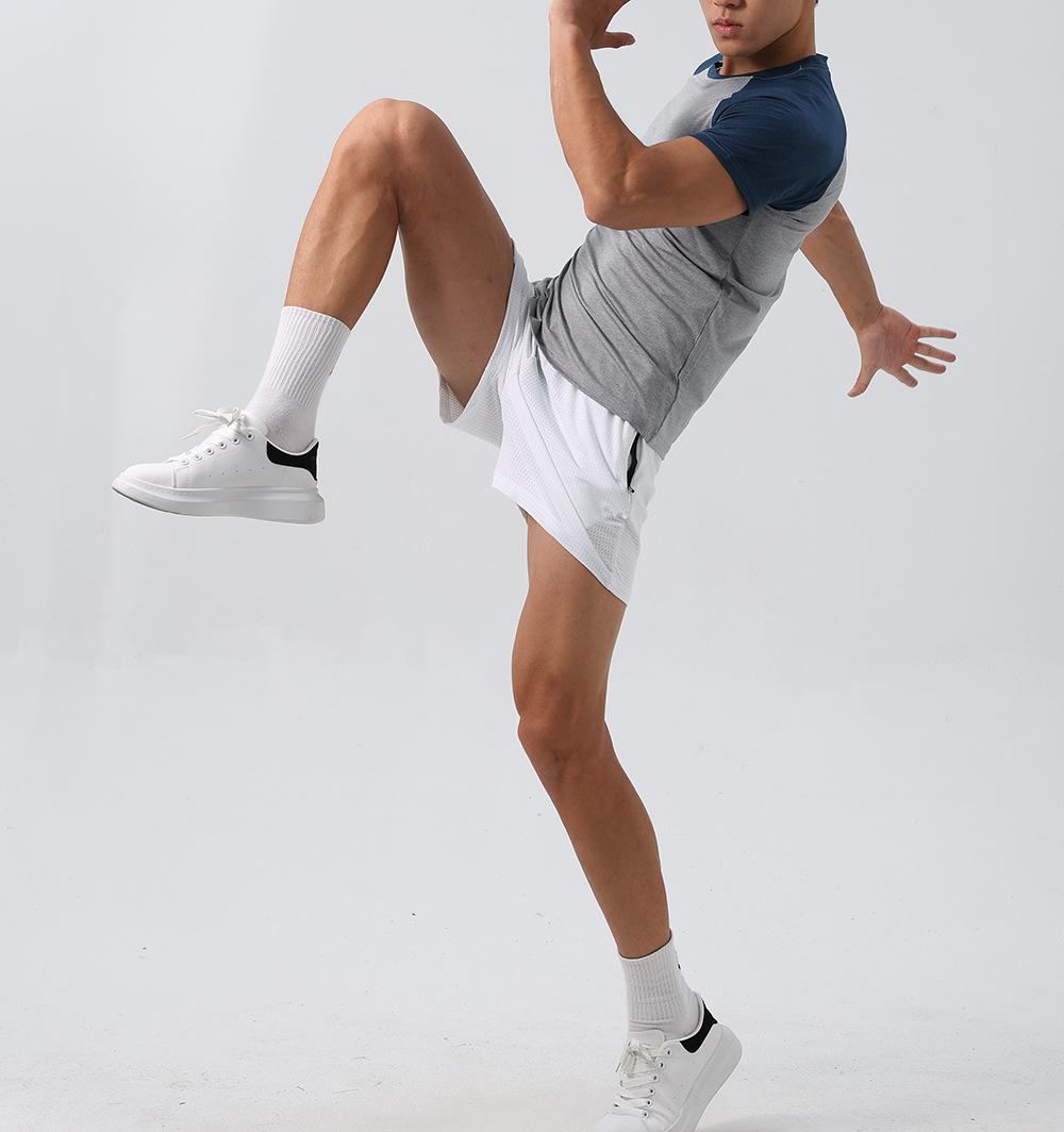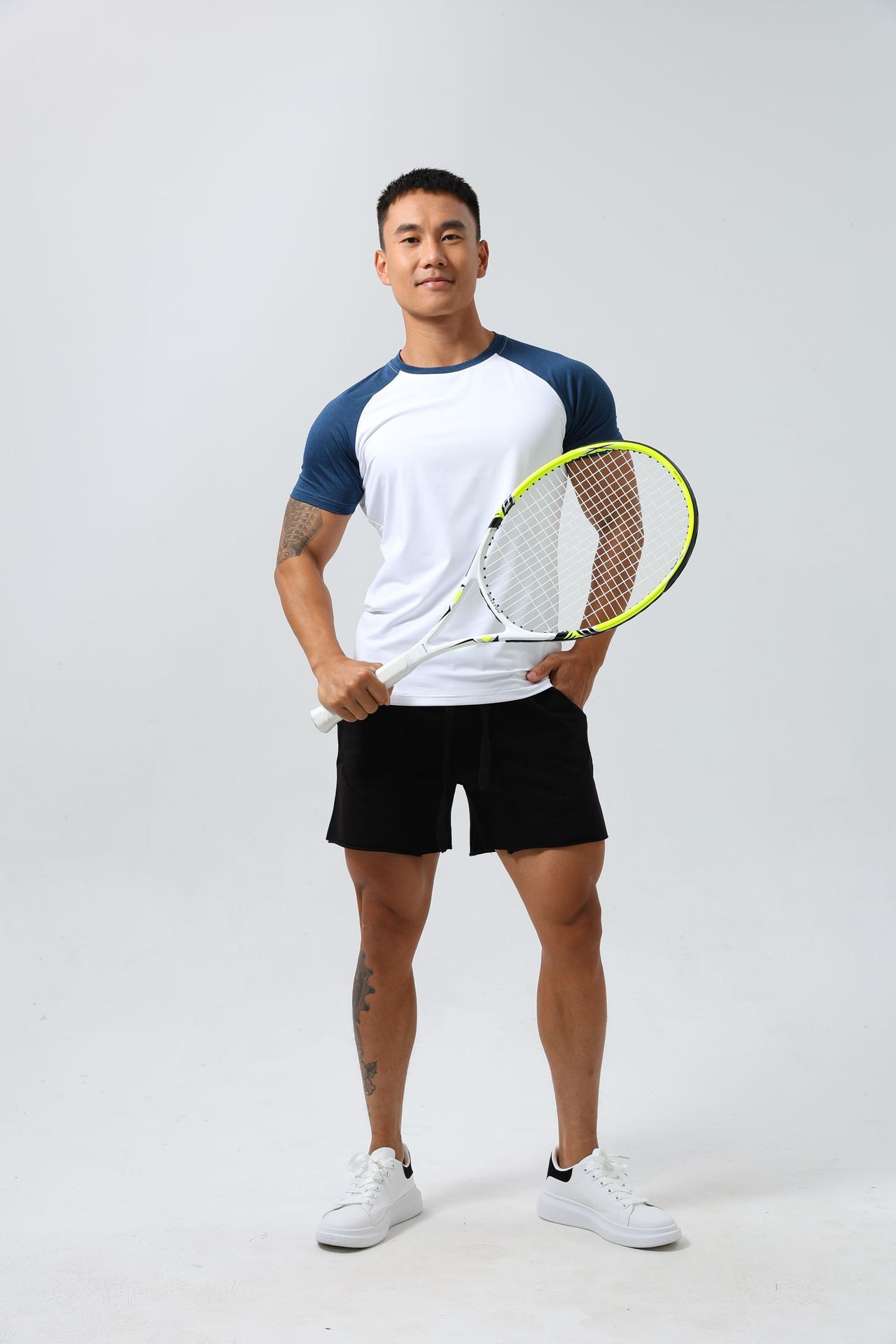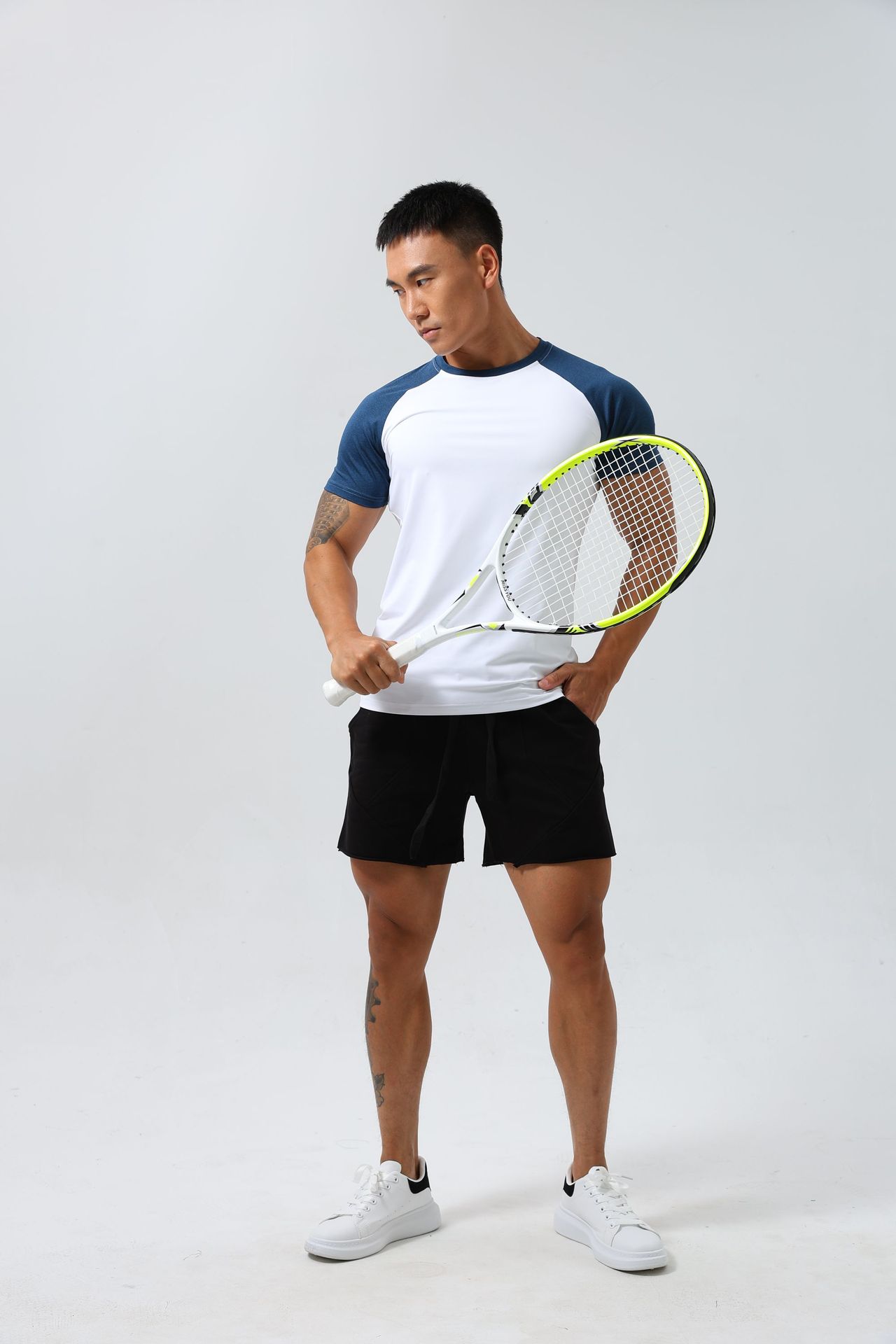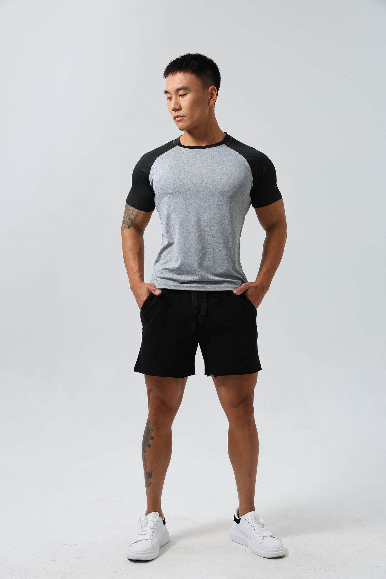Fitness Secagem rápida Manga curta Masculino Super-elástico Respirável Cor Combinando Manga Curta