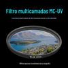 A lente fotográfica mais comum é mais cara do que o melhor filtro, então vale a pena investir em uma lente protetora na frente da sua lente amada. Ao desempenhar um papel protetor, ela não perde a qualidade óptica da lente. A lente é feita de vidro óptico de alta transparência sem nenhuma aberração cromática. A tecnologia de revestimento MRC sólido pode efetivamente aumentar a proteção e é fácil de limpar. Impressões digitais e manchas de óleo também são fáceis de limpar.