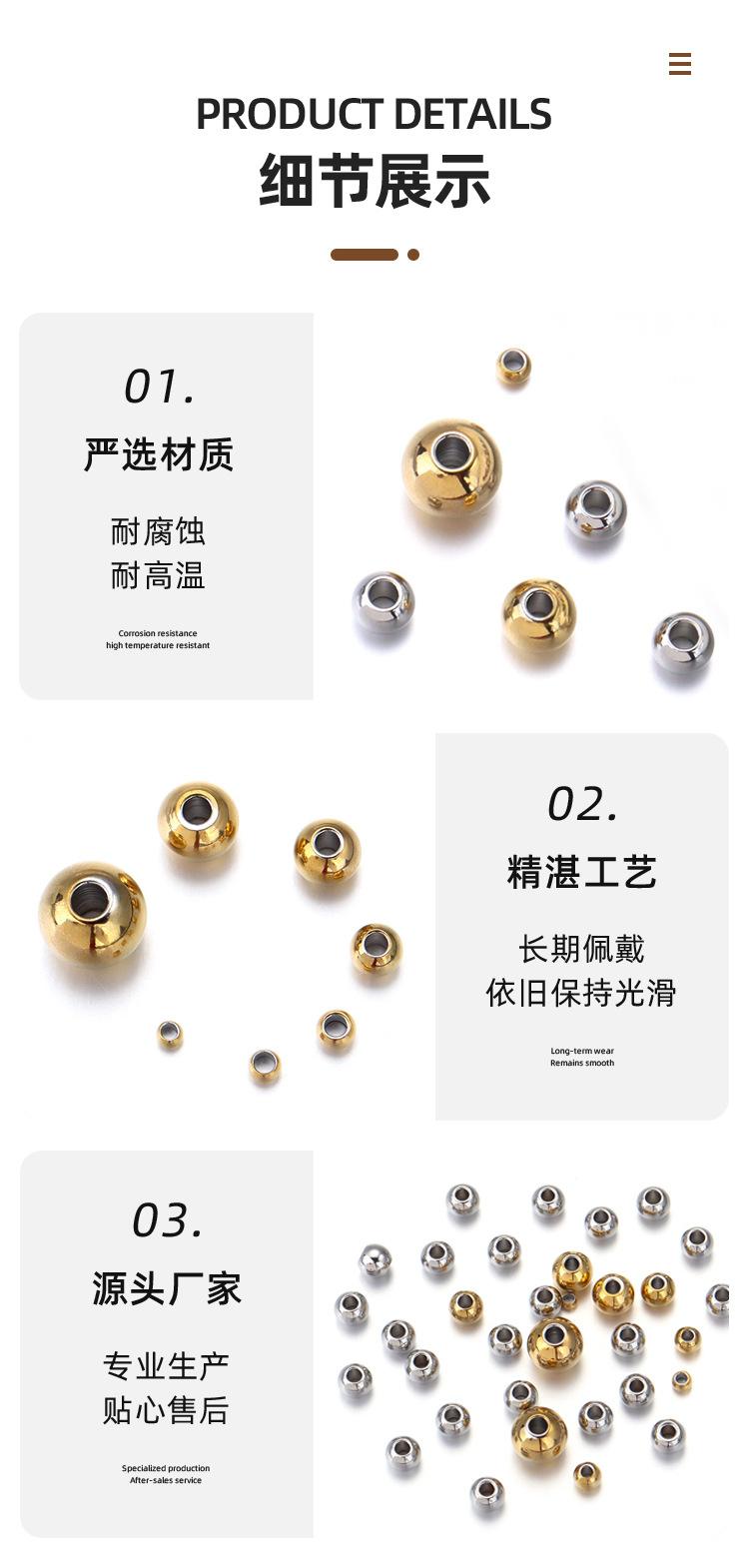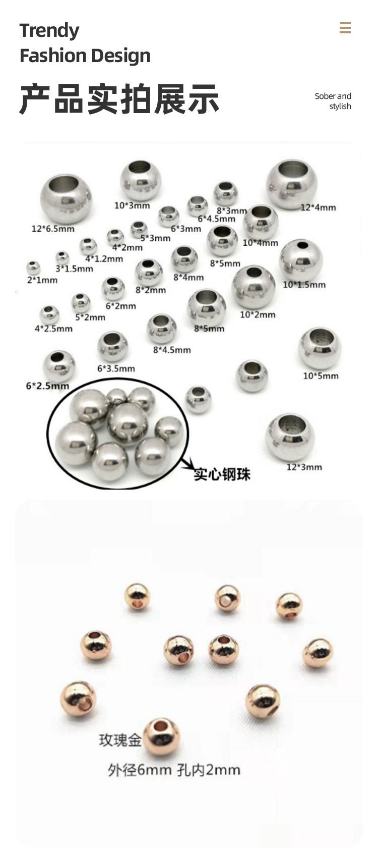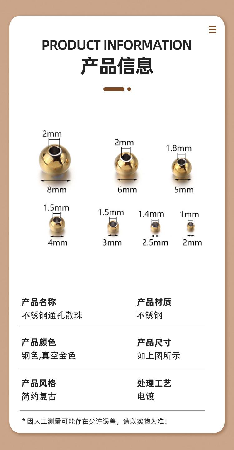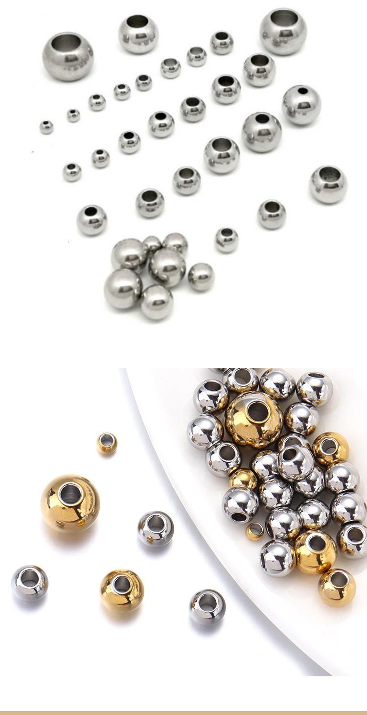 Bola de aço Aço inoxidável através de contas de orifício contas soltas contas de aço de titânio contas sólidas contas de ouro perfuradas contas diy acessórios de jóias
