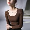 Pure Spice Girl Estilo Sexy U-collar Ombro T-shirt Outono Feminino Novo Top de Manga Comprida Cintura Interna Slim Base Camisa