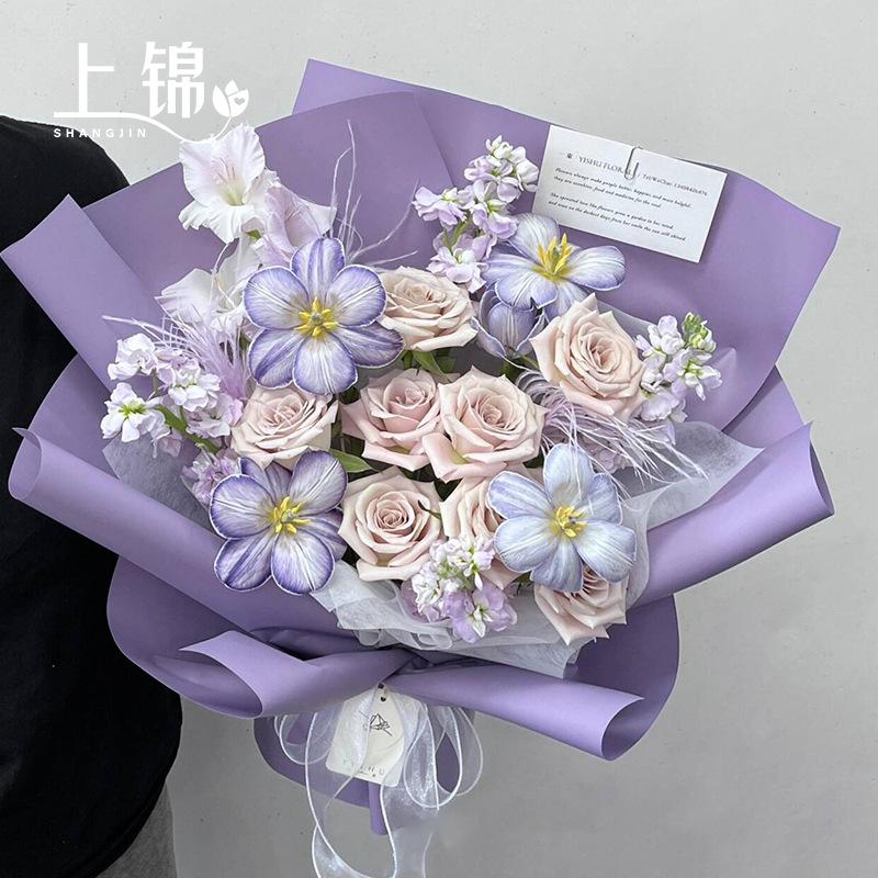 Romântico Roxo Série Envoltório Flor Papel Dia dos Namorados Material Flor Papel Kraft Presente Presente Flor Papel de Embrulho