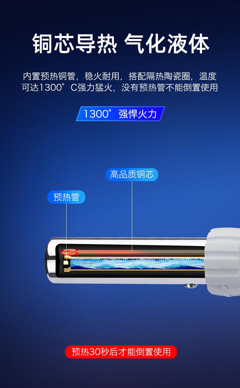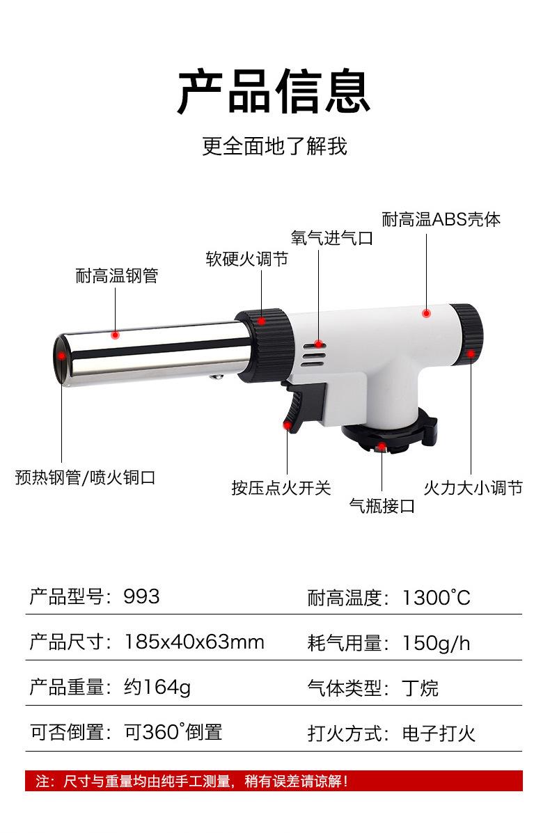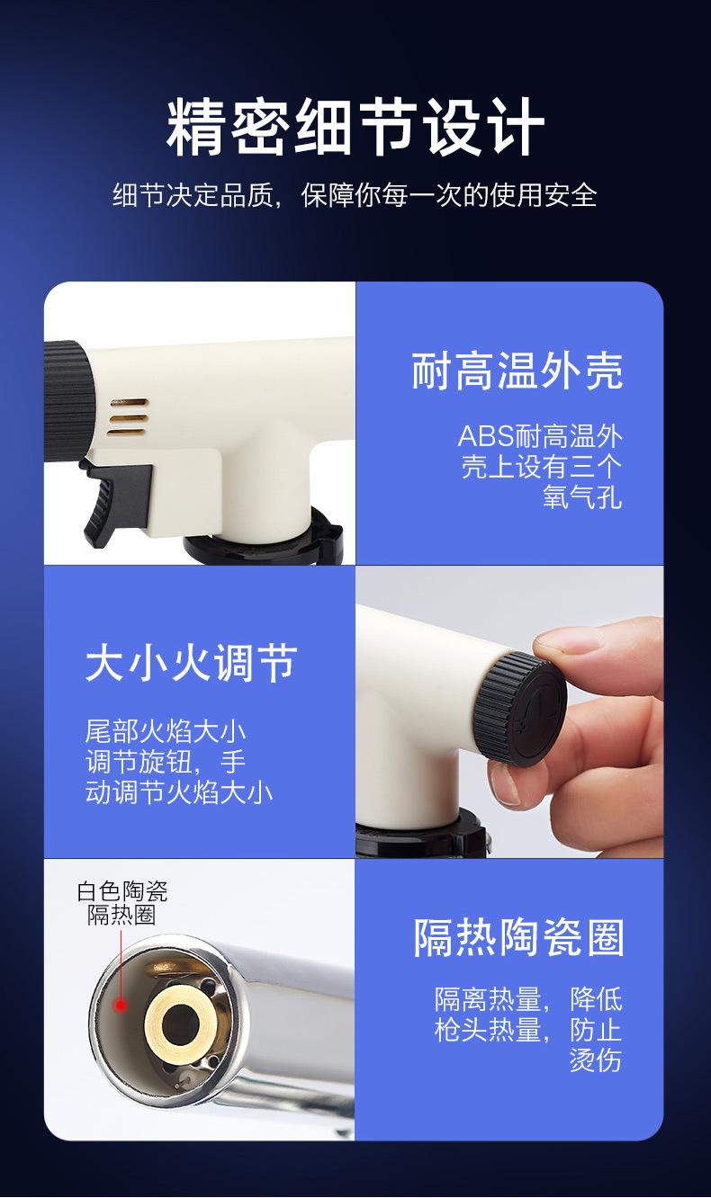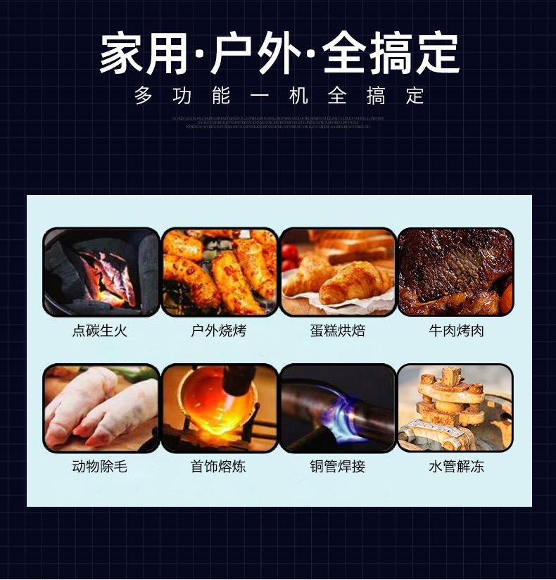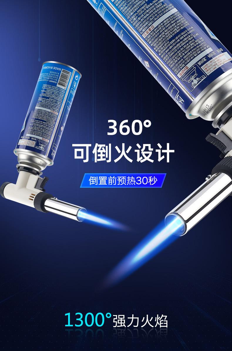 Lança-chamas de dupla finalidade, Tamanho de chama ajustável, a chama pode queimar1300c graus,Chama aberta ajustável, pode ser usada de cabeça para baixo,Uso em 360 graus.