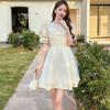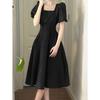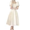 2025 Novo Estilo de Verão Saia Longa Primeiro Amor Francês Emagrecimento da Cintura Feminina Visual Pequeno Fresco Elegante Vestido de Estilo Japonês de Manga Curta