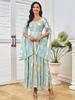 Mulheres europeias e americanas Novo Manto Impresso do Oriente Médio Vestido Longo Transfronteiriço Amazon Manga Longa Vestido Cardigã Muçulmano Mulheres