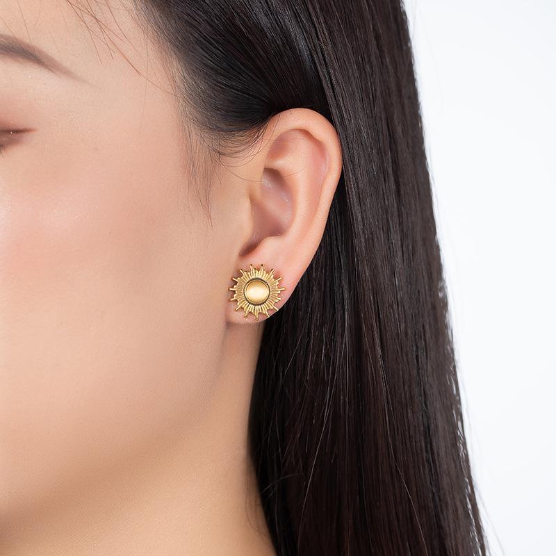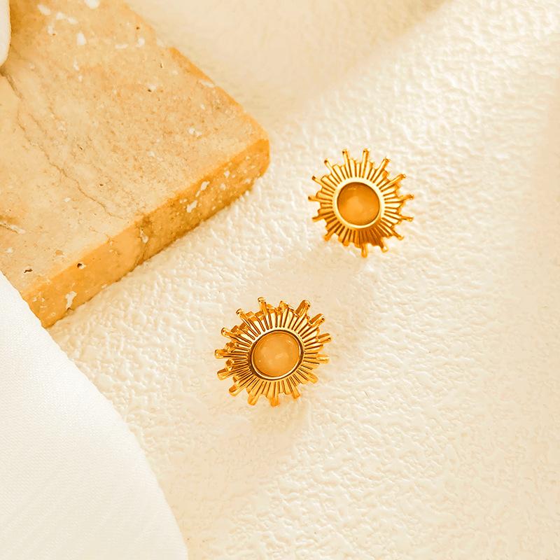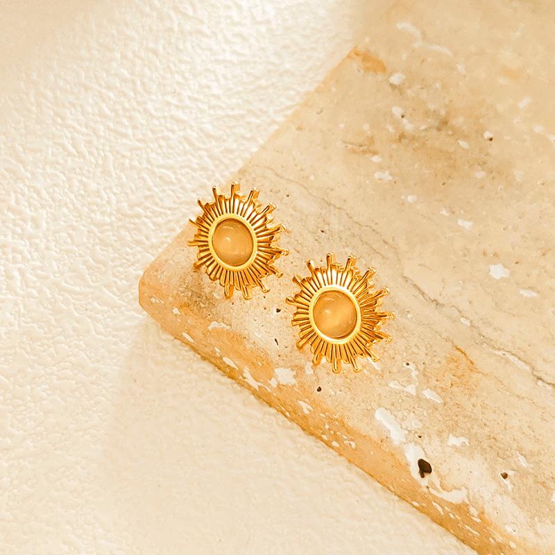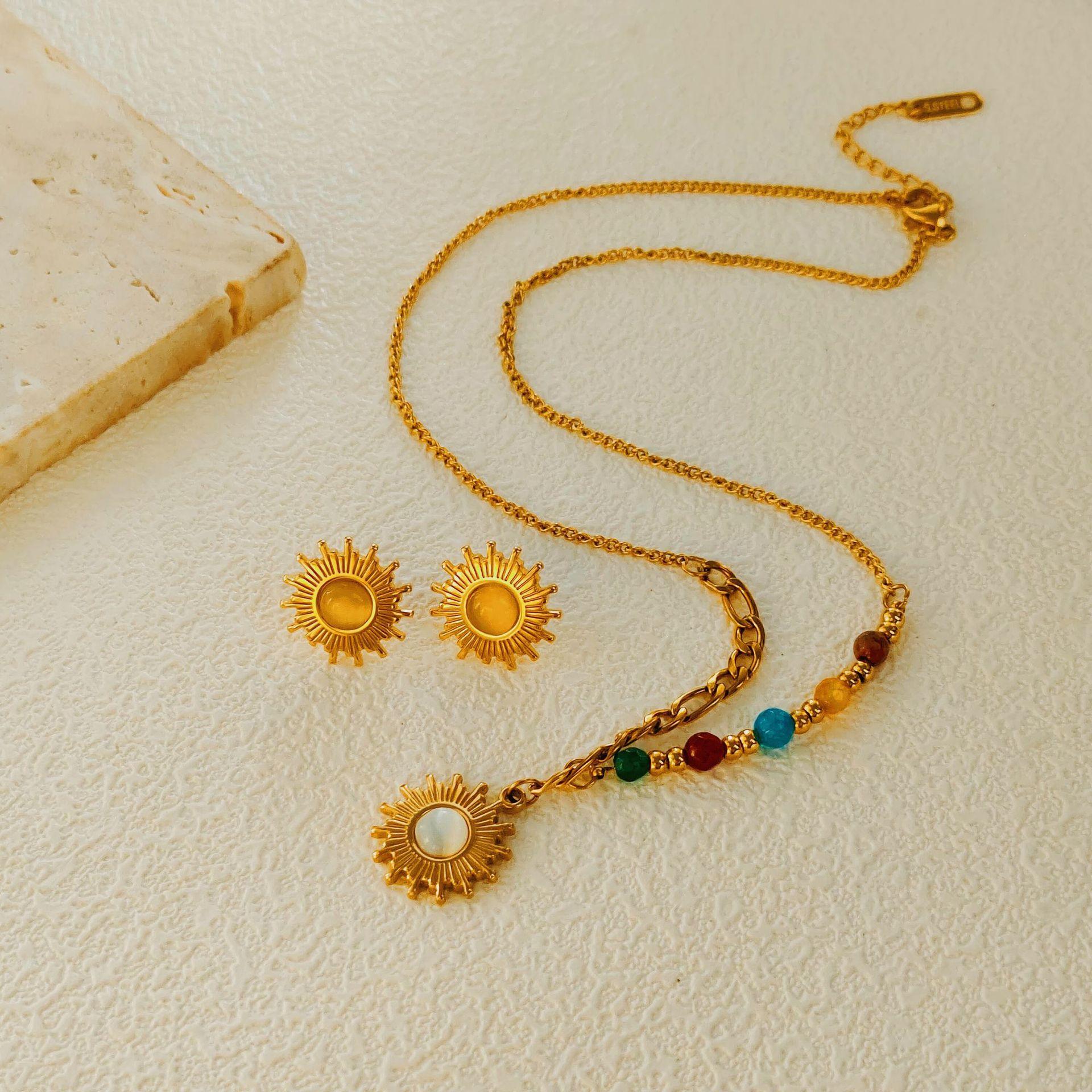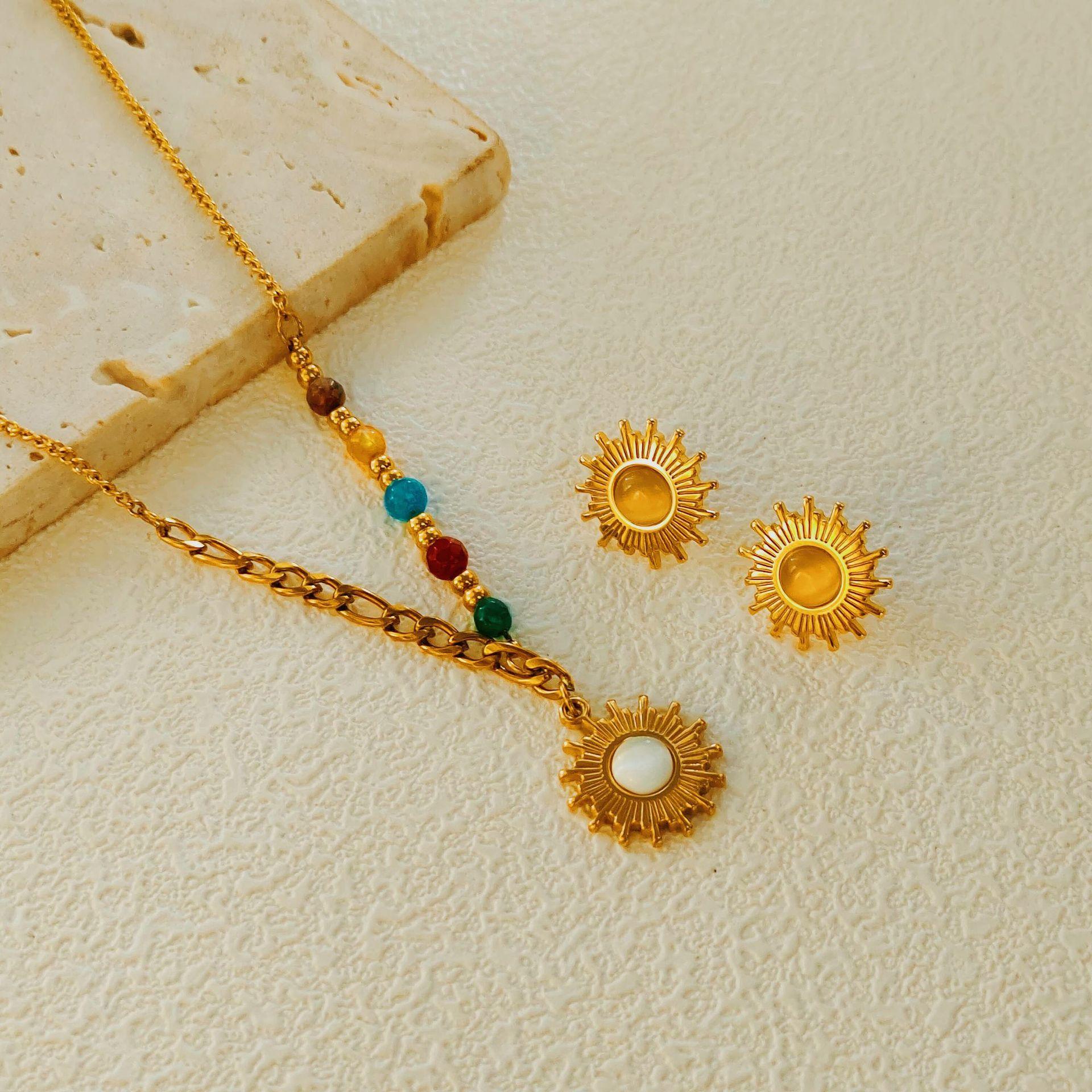 Francês Novo Vintage Sol Olho de Gato Colar Brincos Terno Pedra Natural Cor Retida Aço Titânio Cor Pedra Jóias