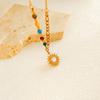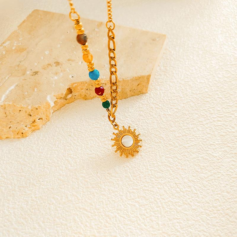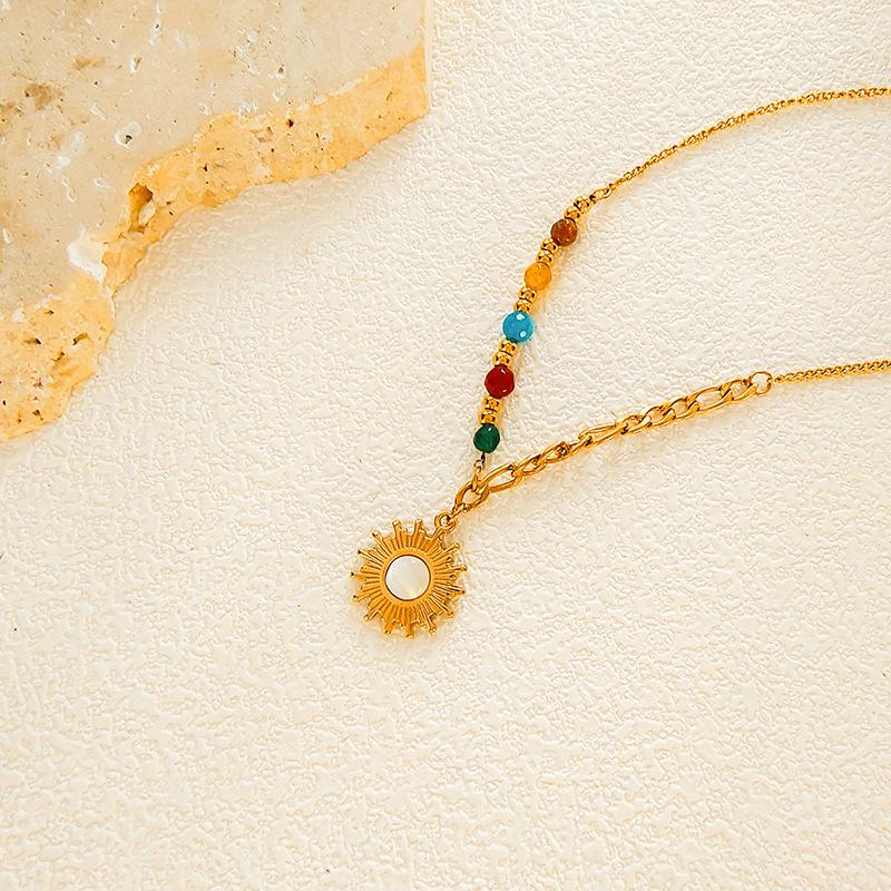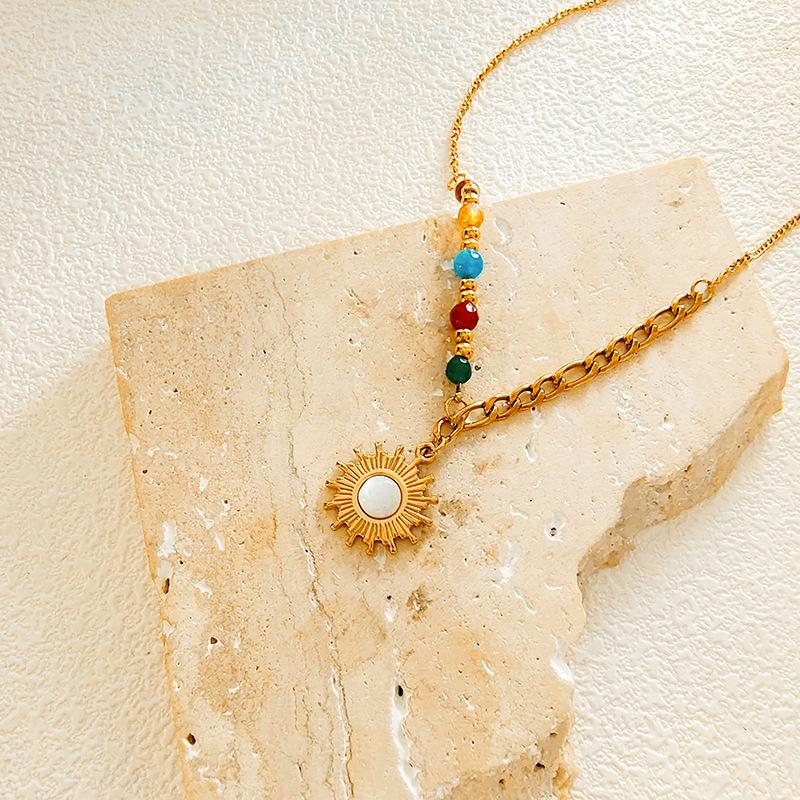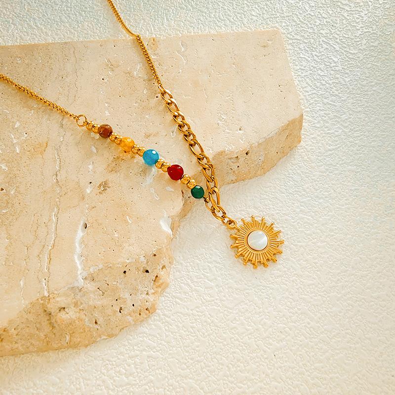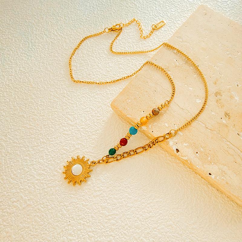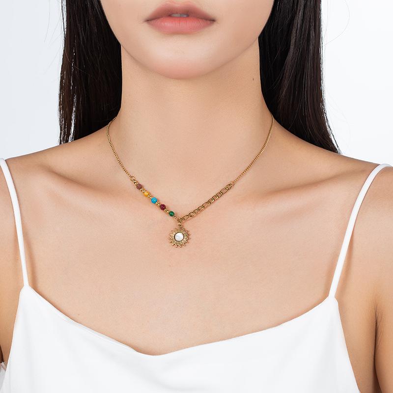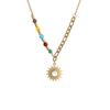 Francês Novo Vintage Sol Olho de Gato Colar Brincos Terno Pedra Natural Cor Retida Aço Titânio Cor Pedra Jóias
