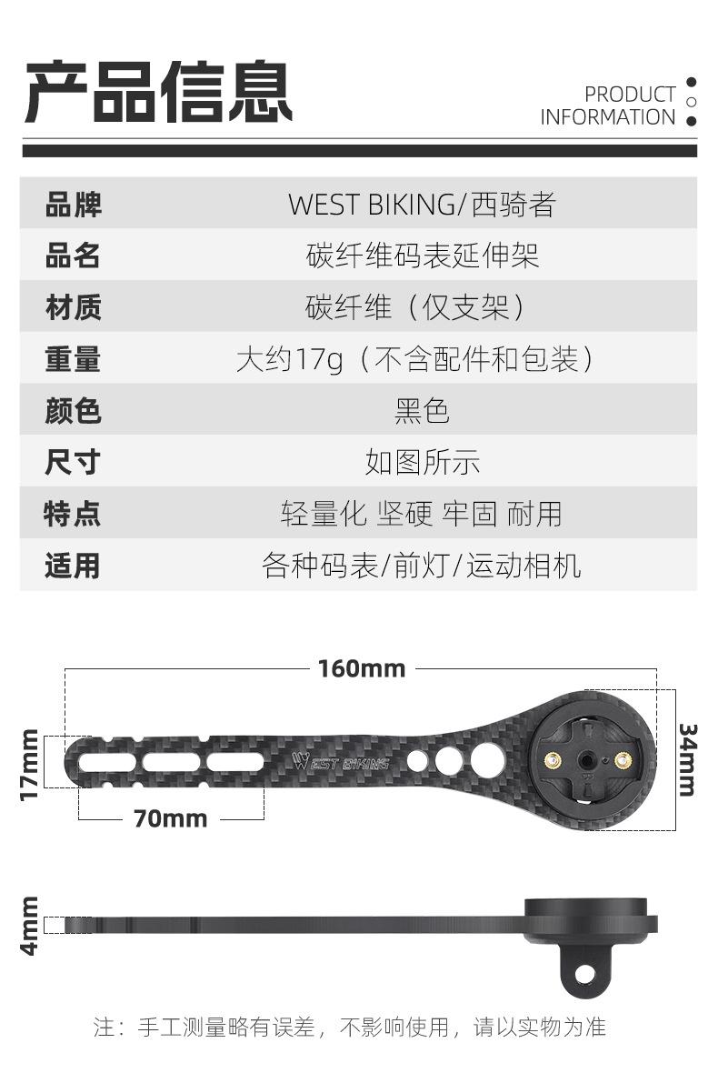 Soporte para manillar de bicicleta de carretera con medidor integrado de fibra de carbono WEST BIKING, base para cámara de movimiento