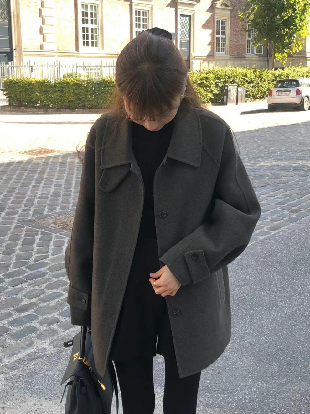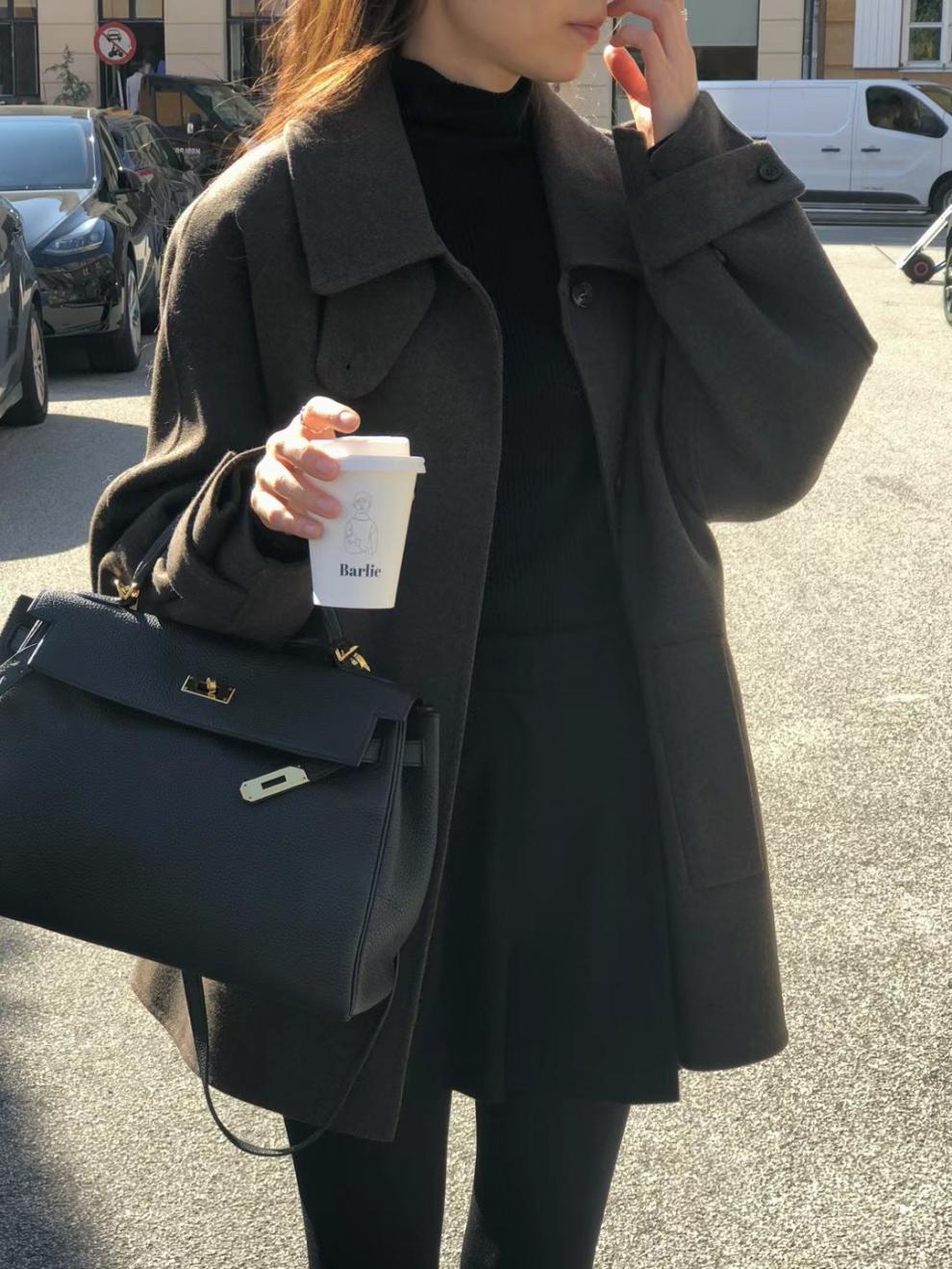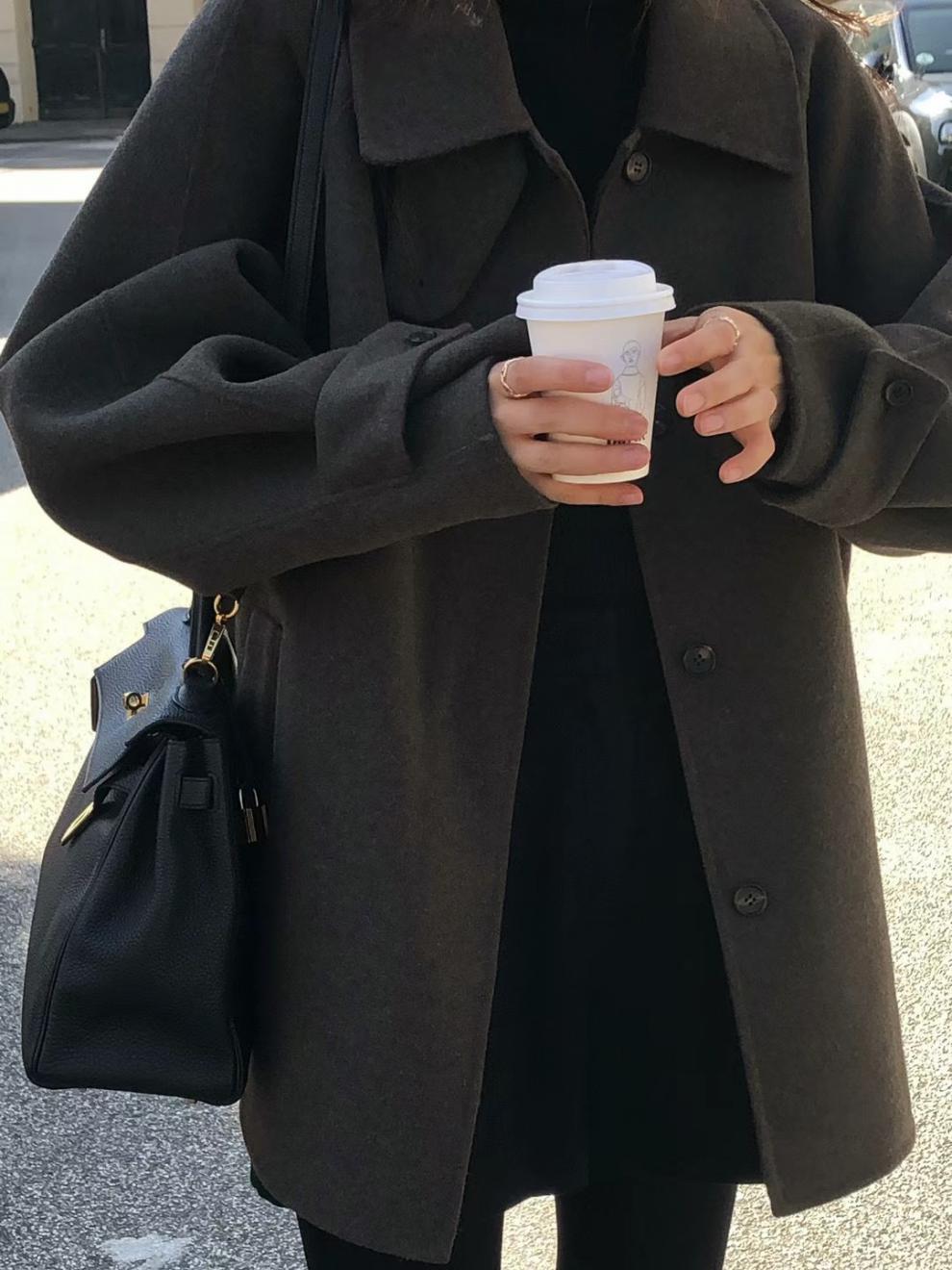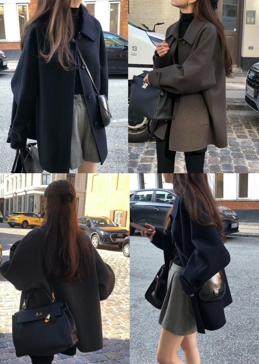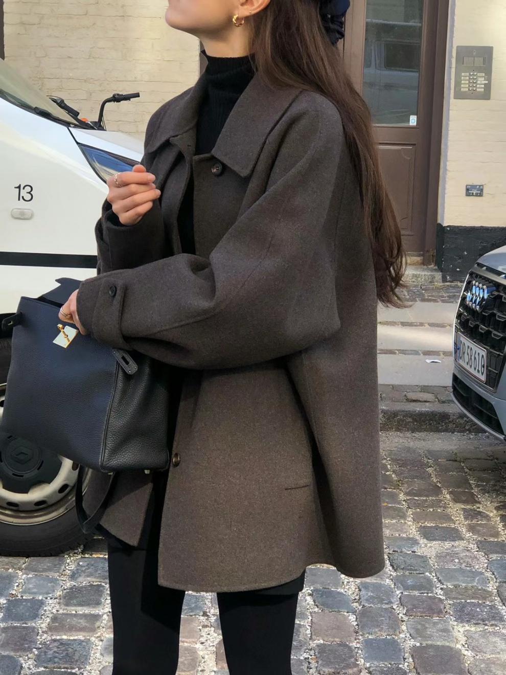 Casaco de lã preto feminino 2024 Outono e inverno Casaco de lã Novo estilo coreano Pequeno casaco feminino sofisticado