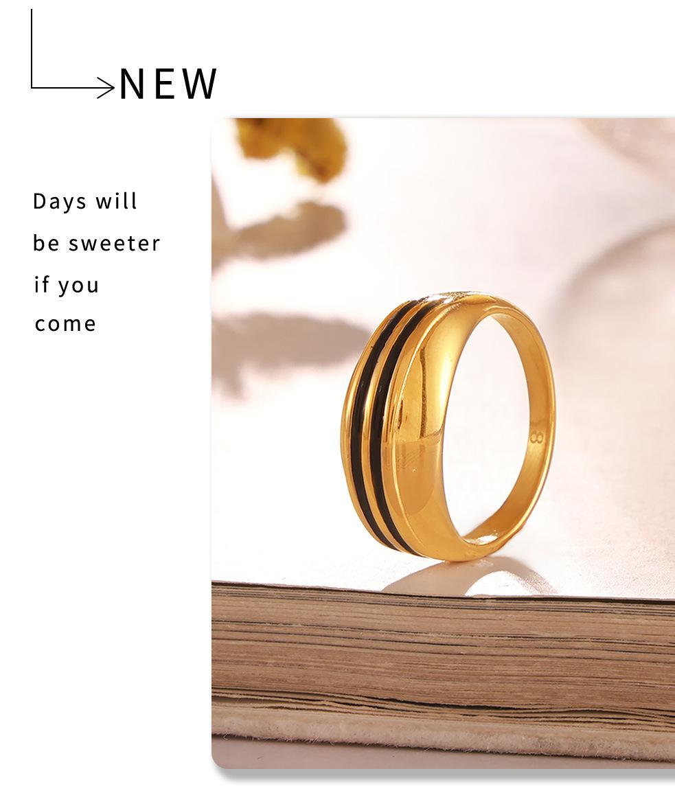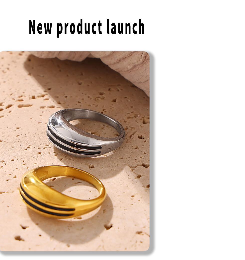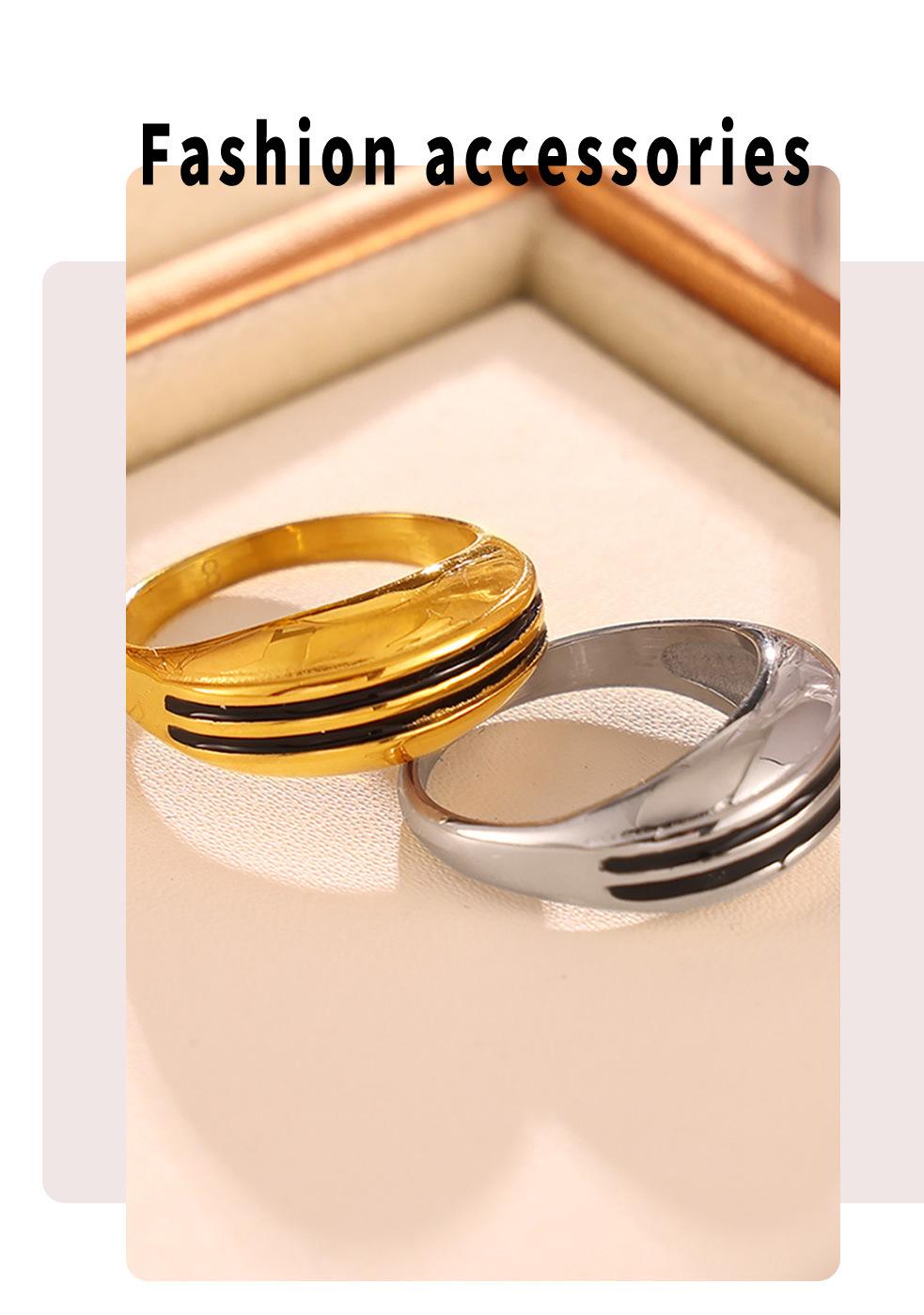 Venda Quente Transfronteiriça Jóias Moda Retro Titânio Aço Dupla Linha Gota Anel de Óleo Simples All-match Design Casal Anel em estoque