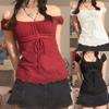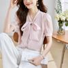 Estilo Bm Nova Camiseta de Renda com Laço Branco de Renda Manga Curta Feminina Gola Quadrada Manga Bufante Renda Aparência Emagrecedora Top Verão