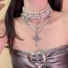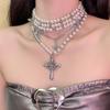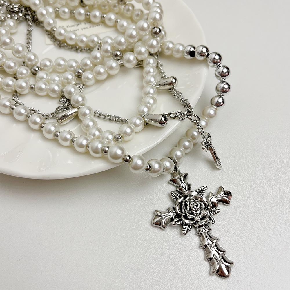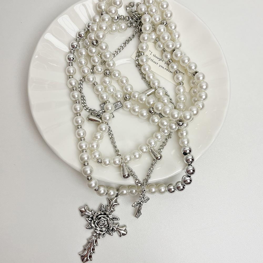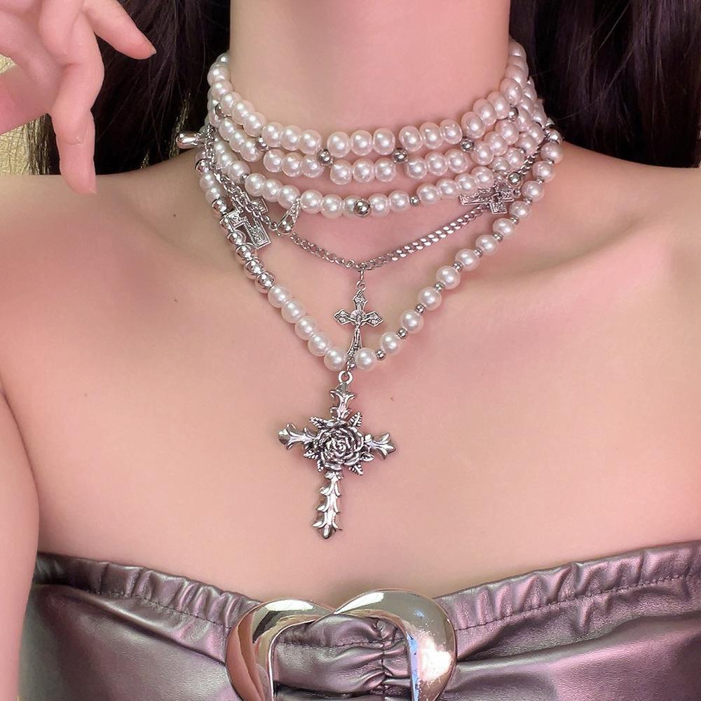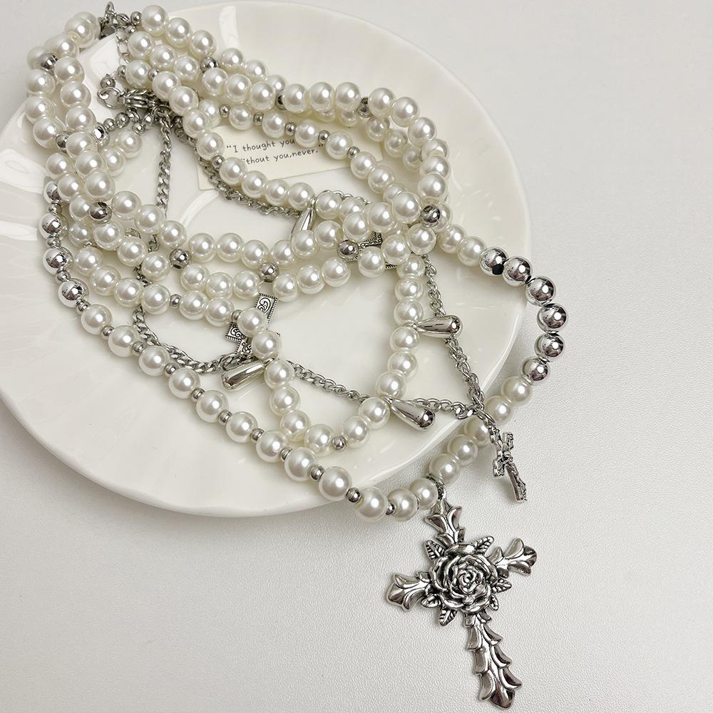 Nicho design multi-camada Pérola cruz pingente colar personalidade feminina all-match clavícula cadeia moda colar de alto sentido