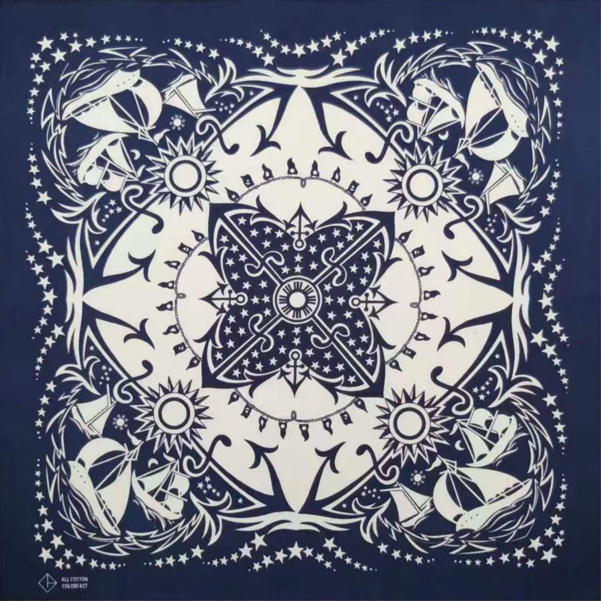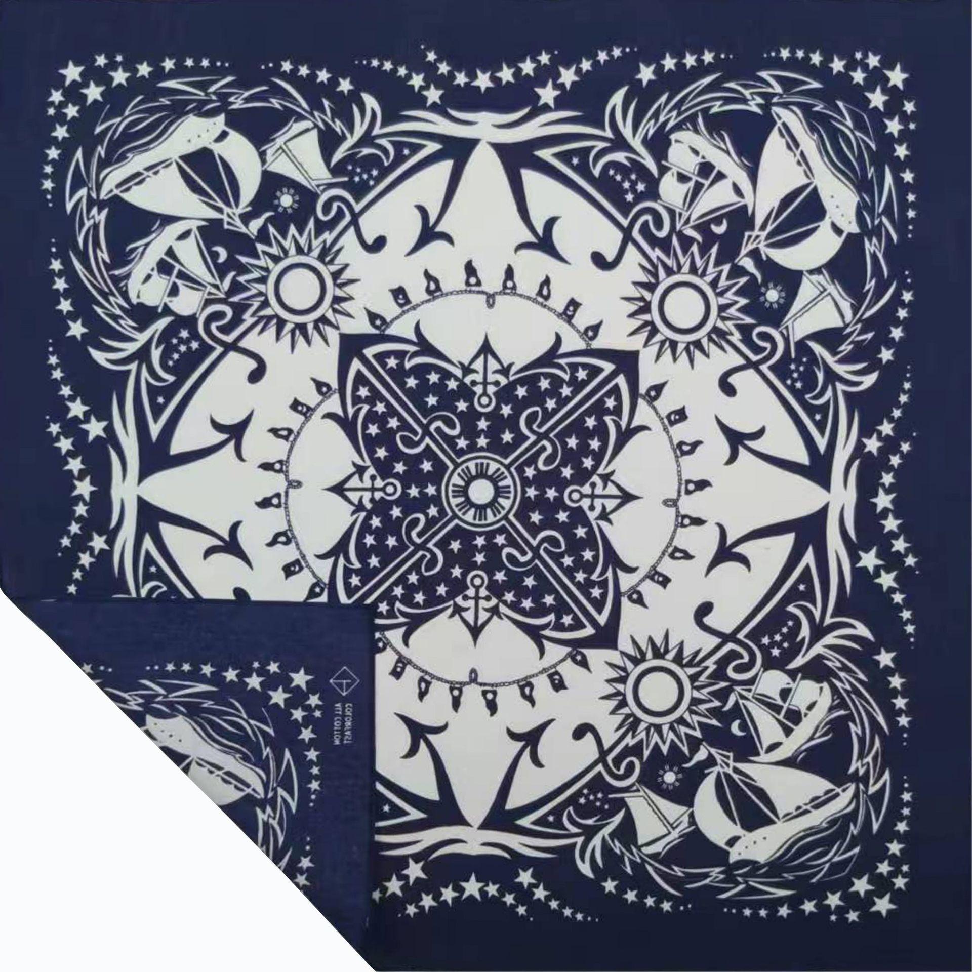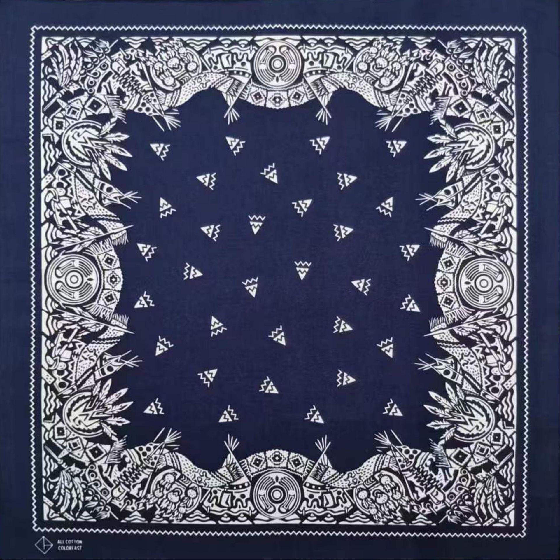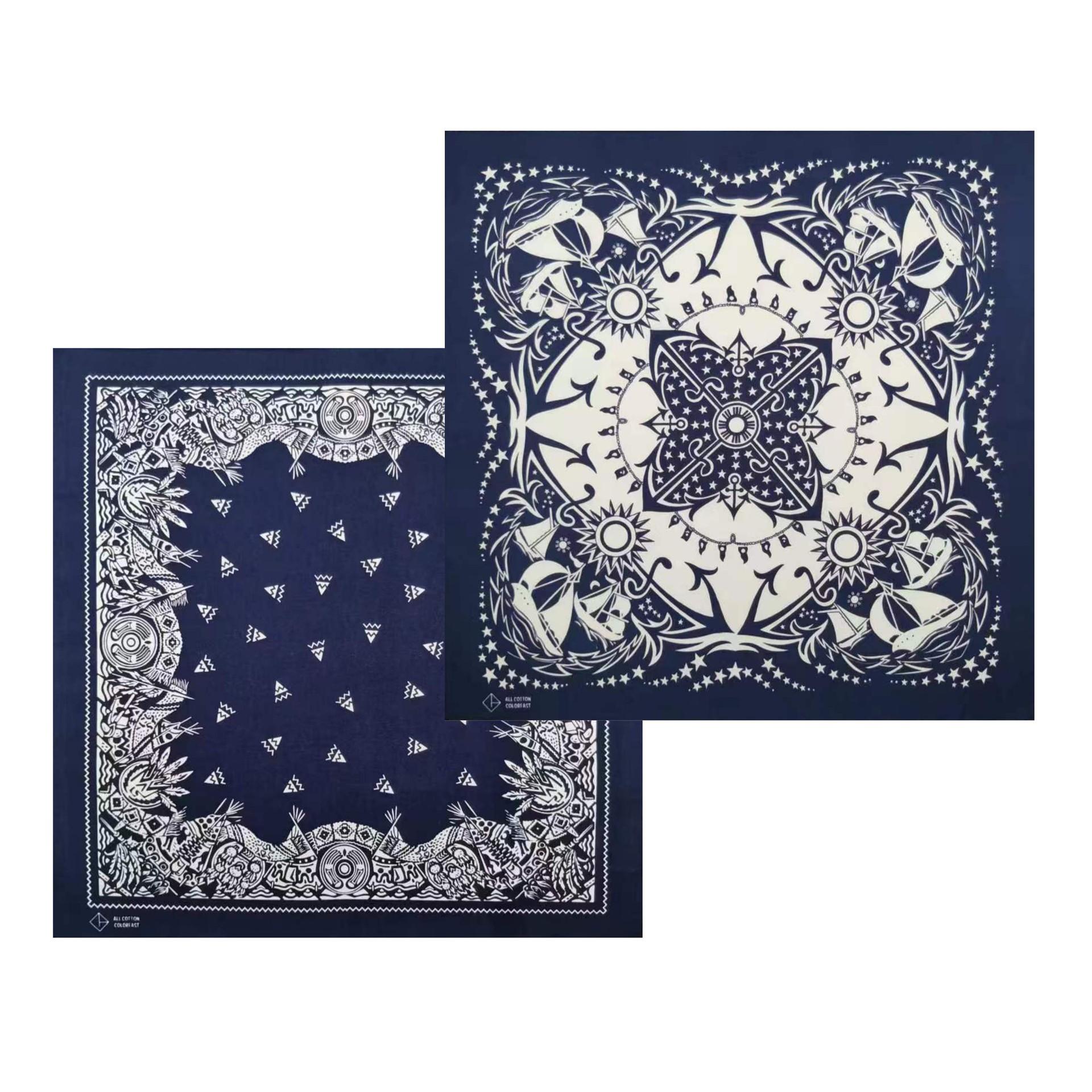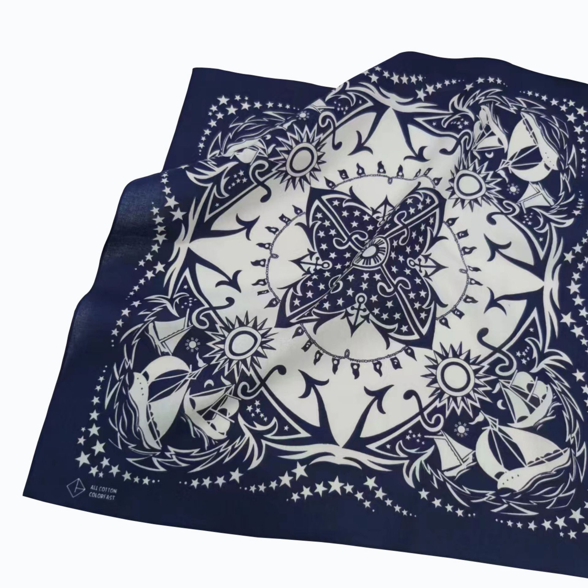 Novo Lenço Quadrado Estampado Azul Marinho de Algodão Dança de Rua Hip-Hop Ciclismo ao Ar Livre Esportes Vela Lenço de Rosto Multifuncional