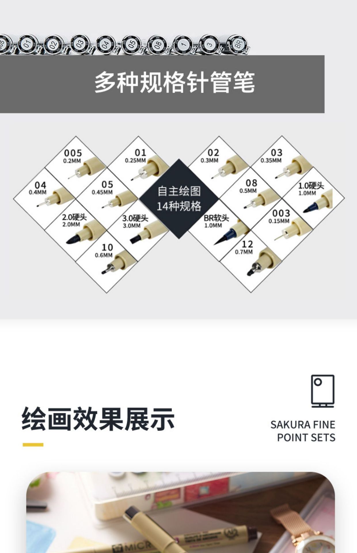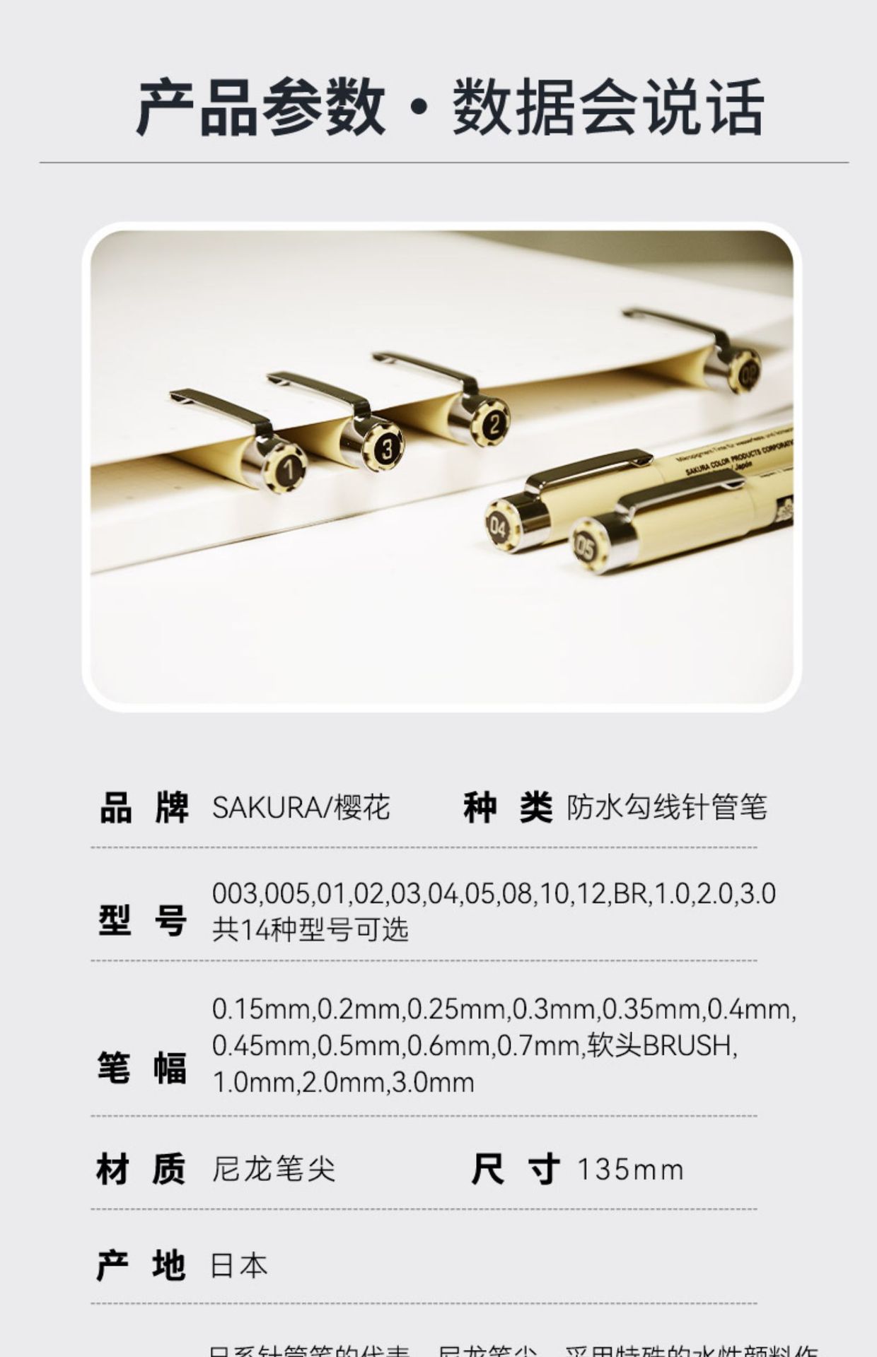 003 (pen width 0.15mm), 005 (pen width 0.2mm), 01 (pen width 0.25mm), 02 (pen width 0.3mm), 03 (pen width 0.35...