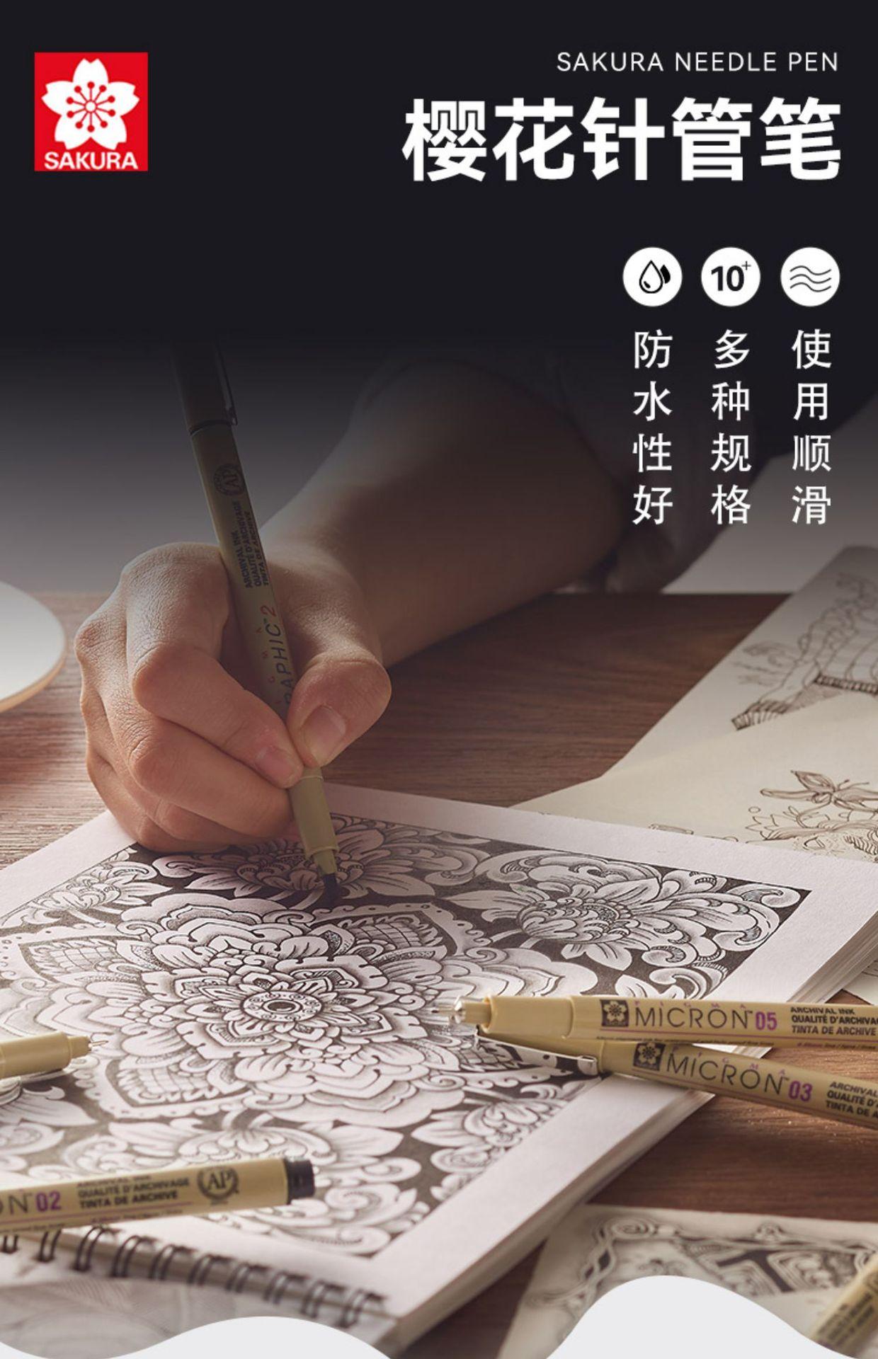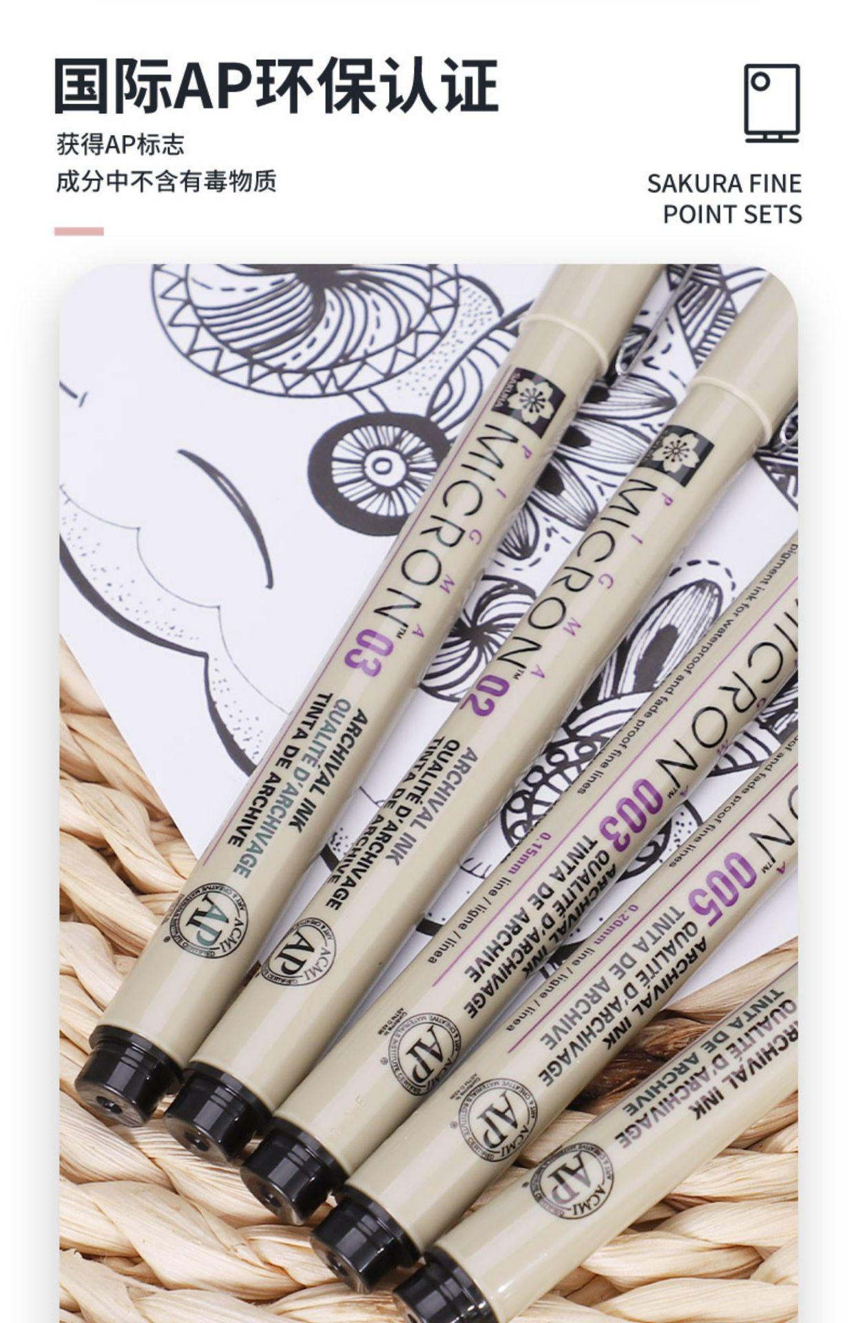 Caneta Gancho Flor de Cerejeira Japonesa Design de Pintura Caneta Pintada à Mão Desenho de Mangá Caneta de Assinatura à Prova d'Água Caneta Agulha de Ponta Macia