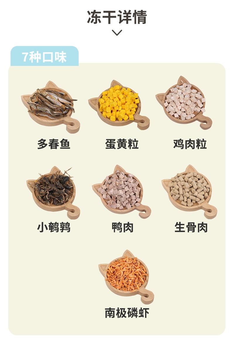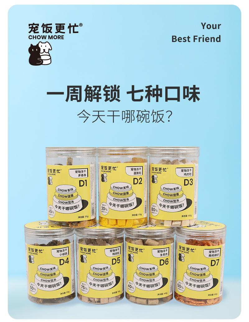 D1 spring fish 55g, D2 egg yolk granules 170g, D3 chicken cubes 100g, D4 small quail 55g, D5 duck meat cubes 9...