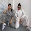 Amazon Roupa Europeia e Americana 2025 Primavera Novo Cor Sólida Manga Longa Moda Calças com Cordão Conjunto de Duas Peças para Mulheres Atacado