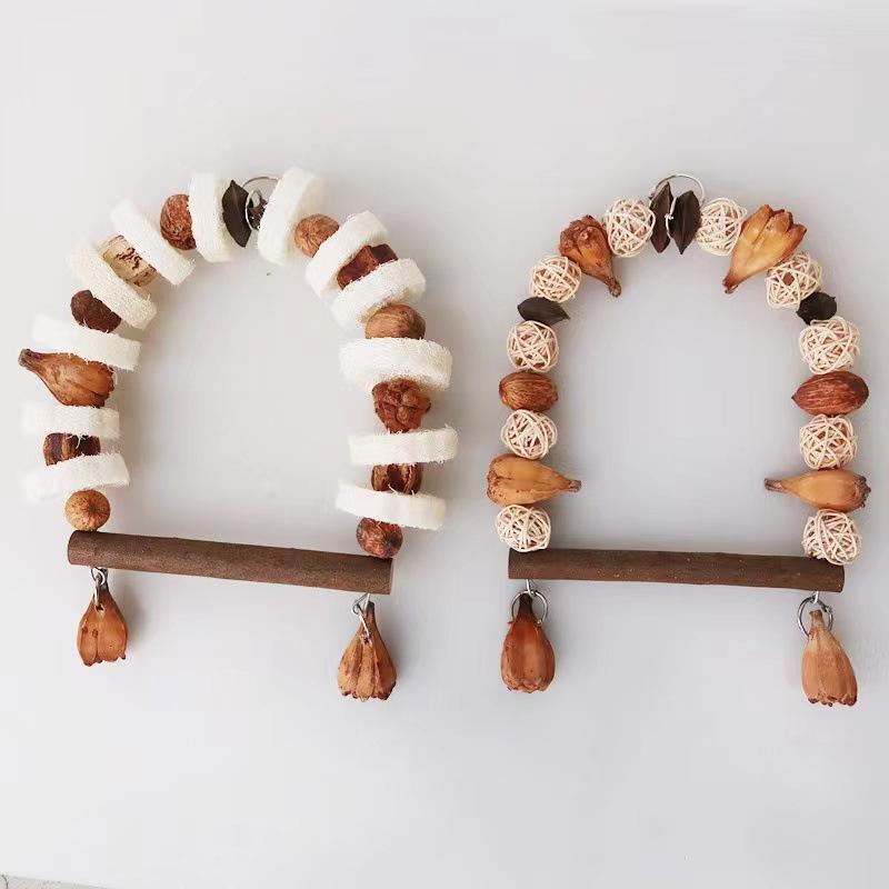 Brinquedo de mordida de papagaio Balanço de frutas Brinquedo de molar resistente a mordidas Brinquedo de papagaio Mordida de madeira Molar Corda grande