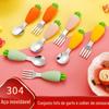 304 criativo aço inoxidável dos desenhos animados colher das crianças Garfo bebê alça curta alimentos complementares de treinamento garfo colher portátil talheres terno