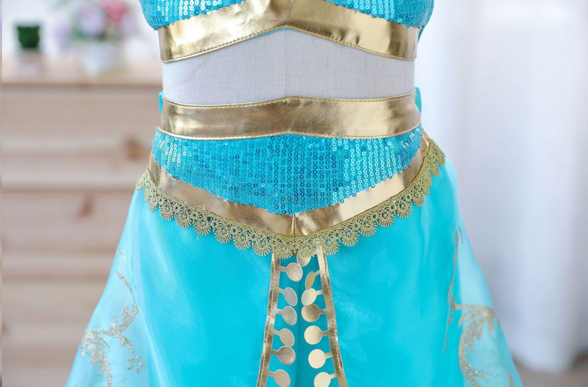 Traje cosplay das meninas de Halloween Aladdin lâmpada mágica Jasmim Princesa lantejoulas duas peças roupas de dança