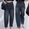 Preto plus size jeans para as mulheres Primavera e Outono Nova cintura Alta pêra em forma de figura emagrecimento cross-body pequeno papai harém calças