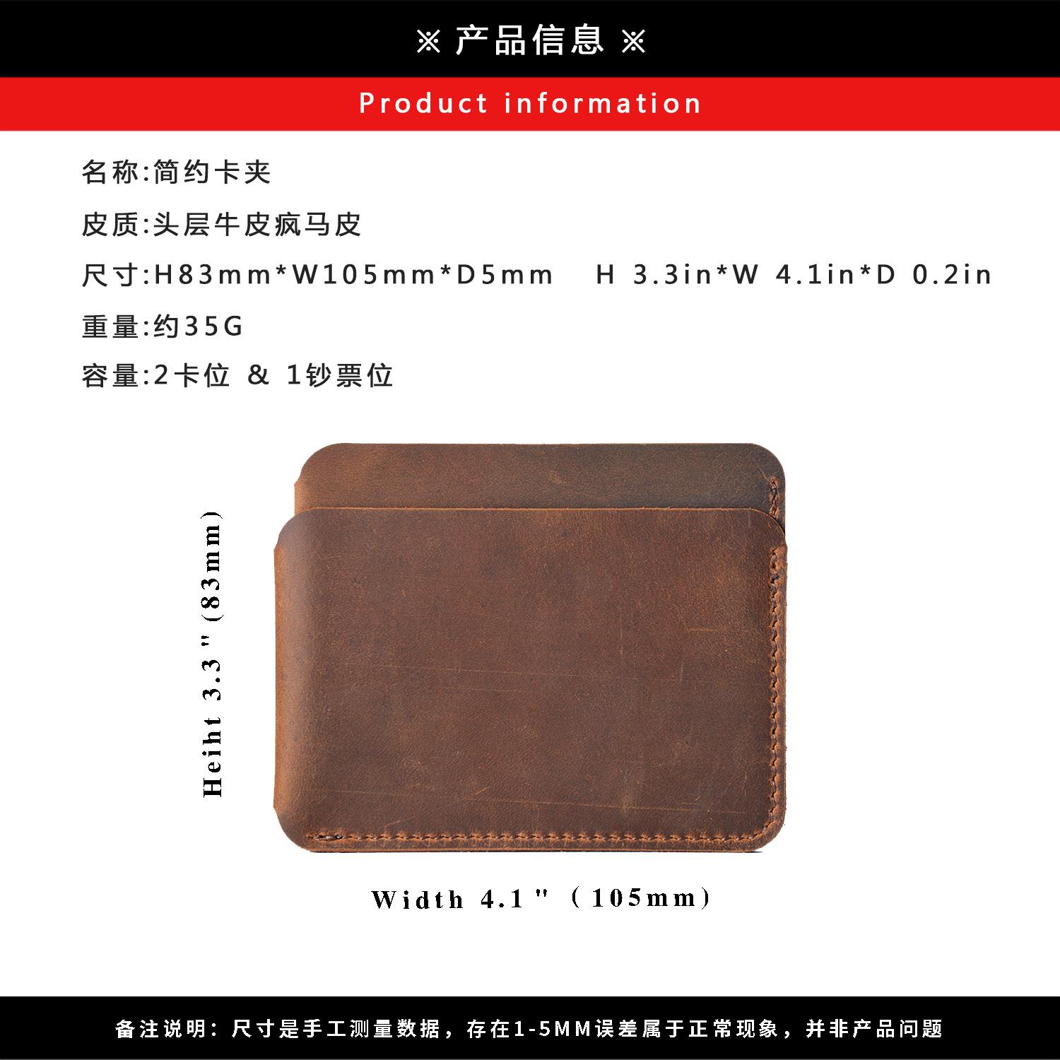 Couro de cavalo louco é um couro vintageCom o passar do tempo, ele se tornará mais brilhante e perfeito. A maior característica do couro Crazy Horse é seu estilo áspero. Arranhões podem aparecer facilmente com um leve arranhão, mas podem ser imediatamente reduzidos ou até mesmo desaparecidos ao esfregar com as mãos.A magia!