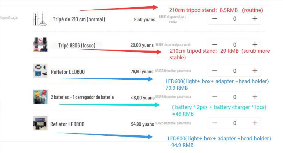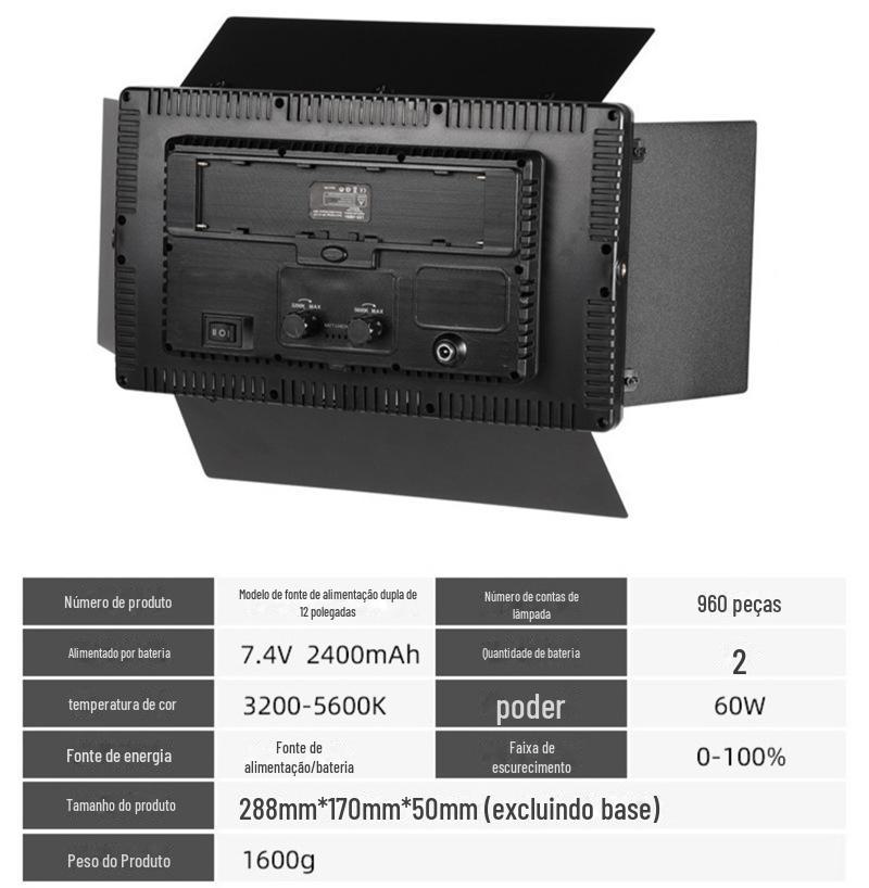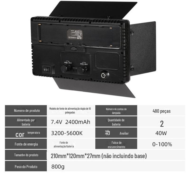 Observação: quando você precisar usar a luz de preenchimento ao ar livre, é recomendável usar 2 baterias e 1 carregador de bateria.