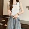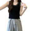 Verão Novo Contraste Cor Elegante Spice Girl Malha Camisola Exterior Desgaste Base Alça Sem Mangas Moda Elegante Top