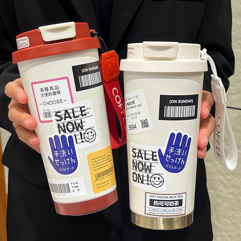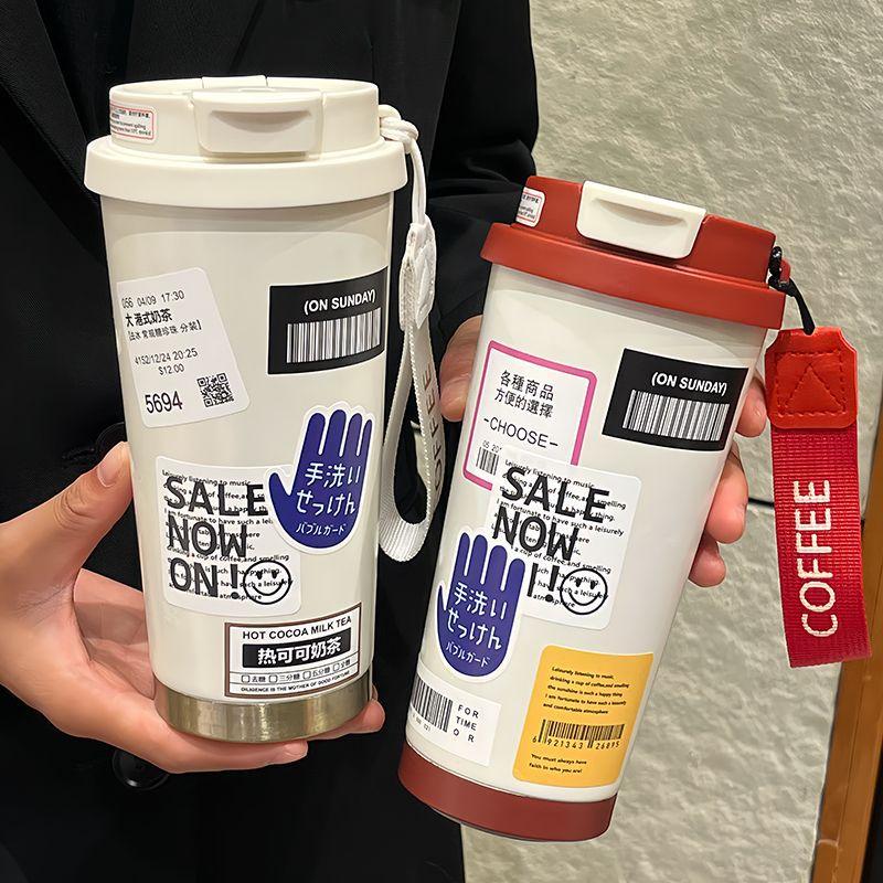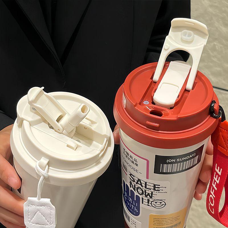 Copo de café de palha Copo térmico 316 Aço inoxidável de grande capacidade Simples bonito Estudante portátil Copo de beber de escritório