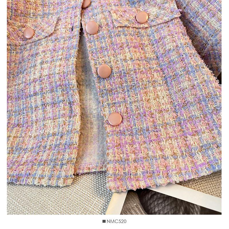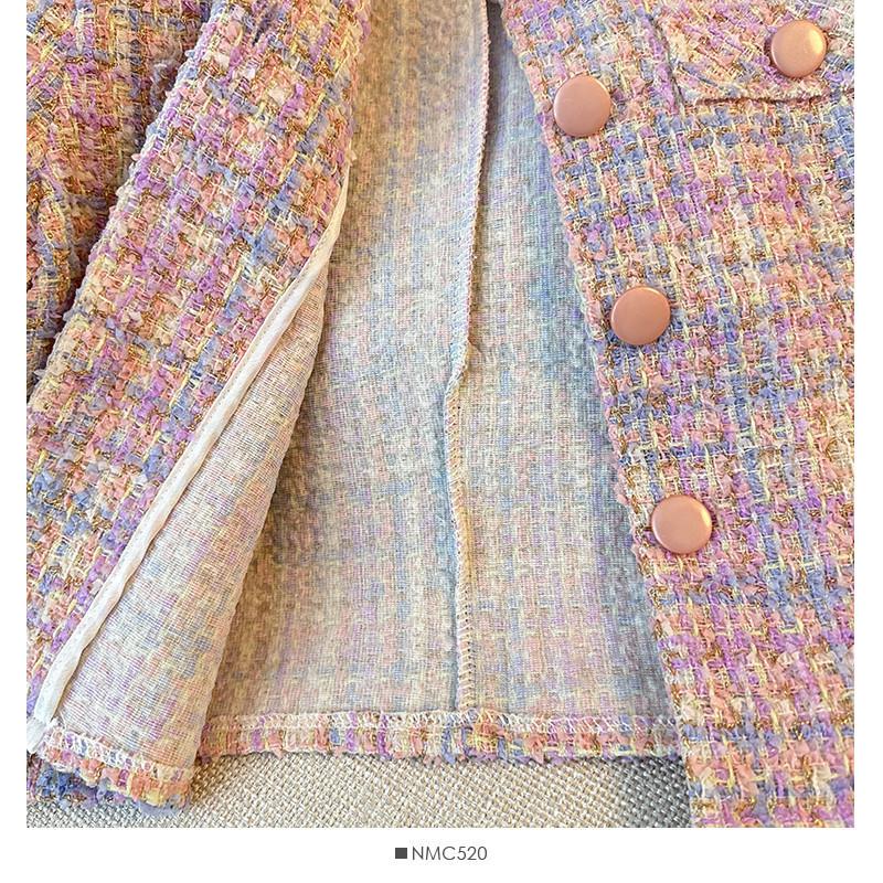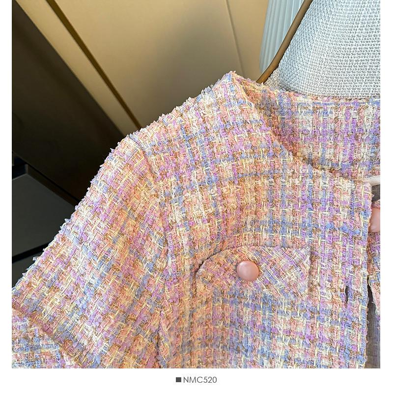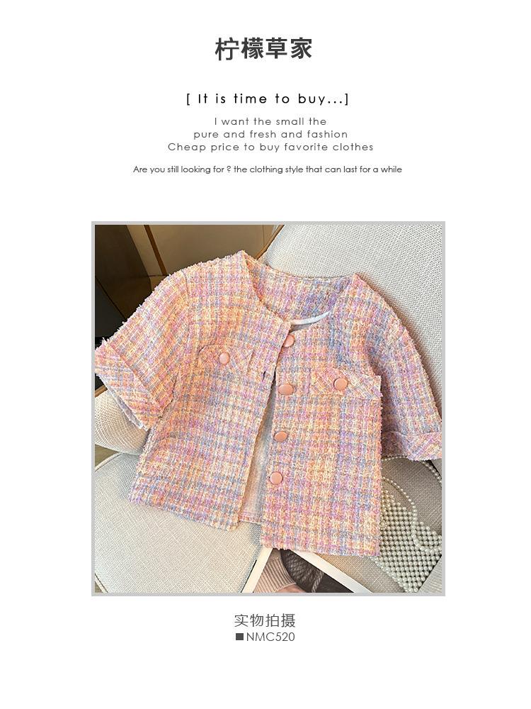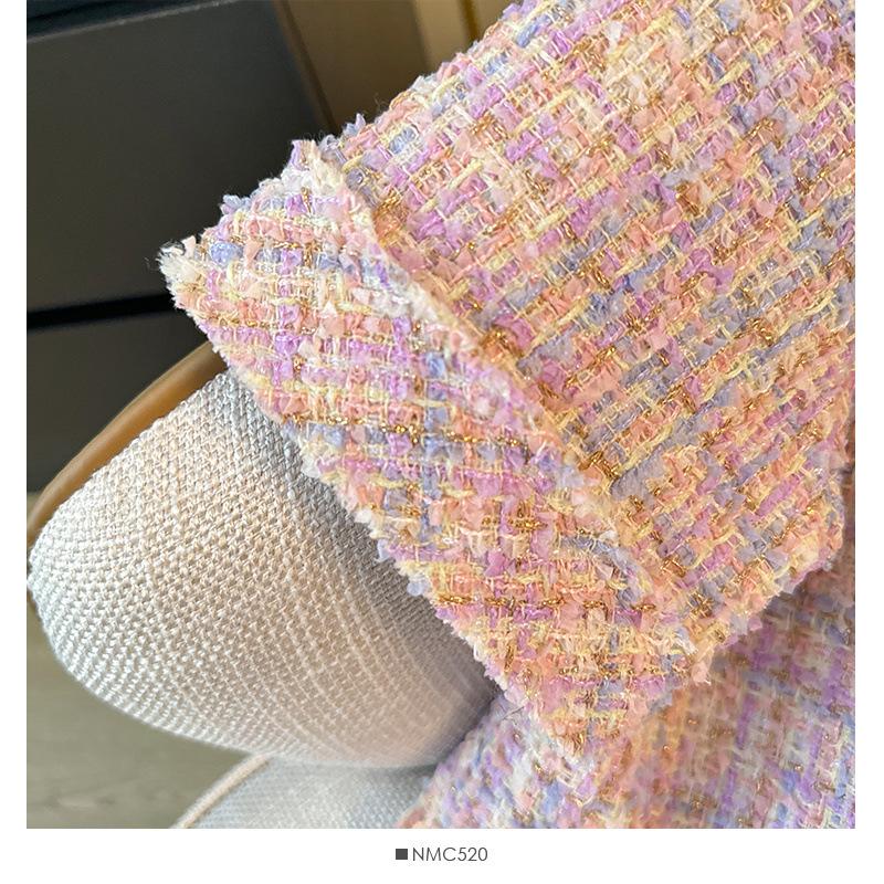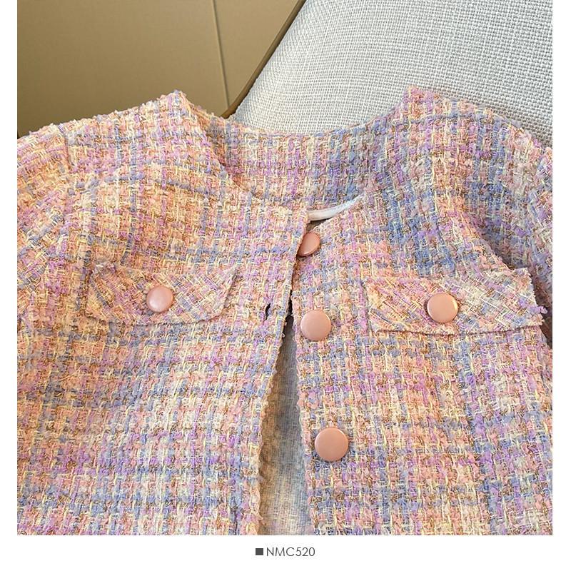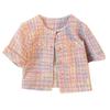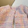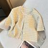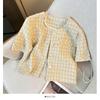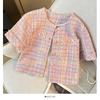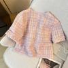 Camisa Tweed Indústria Pesada Cor Contrastante Bolso Solta Manga Curta Feminina 2024 Verão Temperamento Socialite High-End Jaqueta Curta