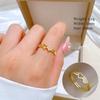 [Ouro Real] Anel Cruz Diamante Verde Completo Abertura Ajustável Simples Solitário Anel Japonês Anel de Casal