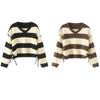 Europa e Estados Unidos roupas femininas transfronteiriças 2024 outono e inverno novo TK Amazon onda listra casual manga comprida com capuz de malha feminina