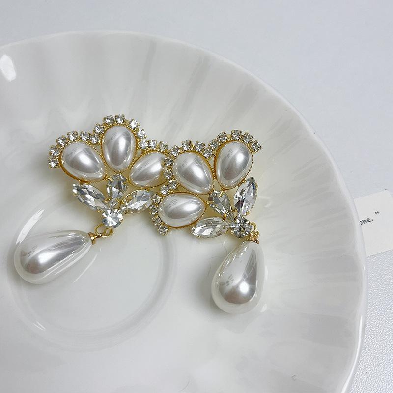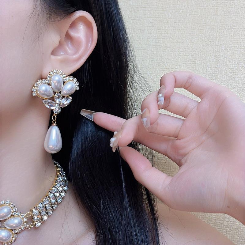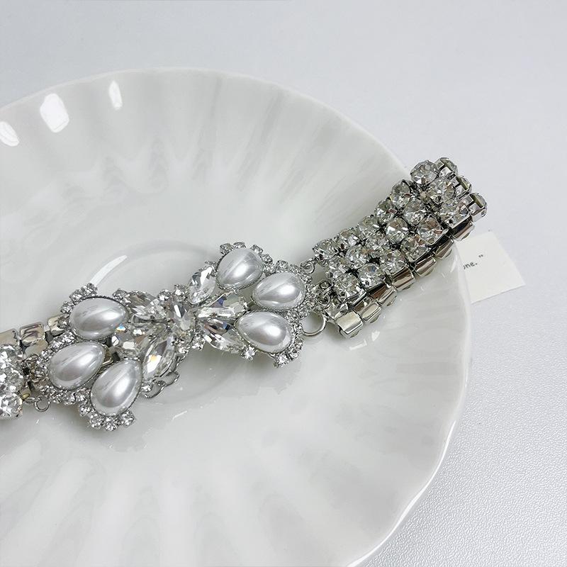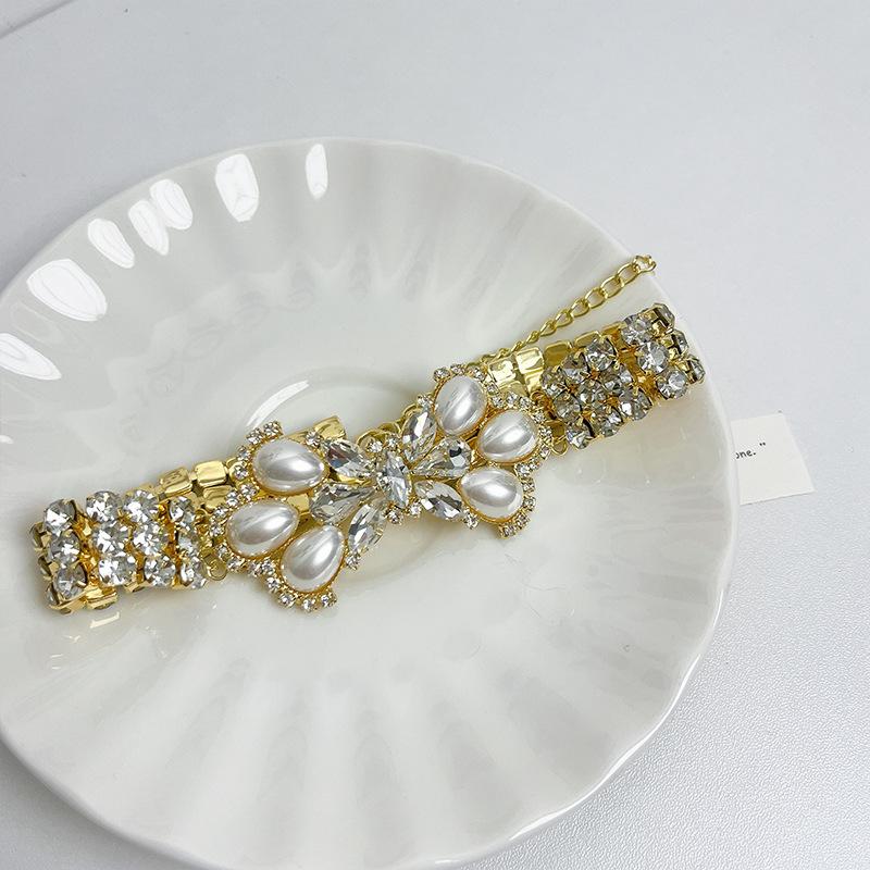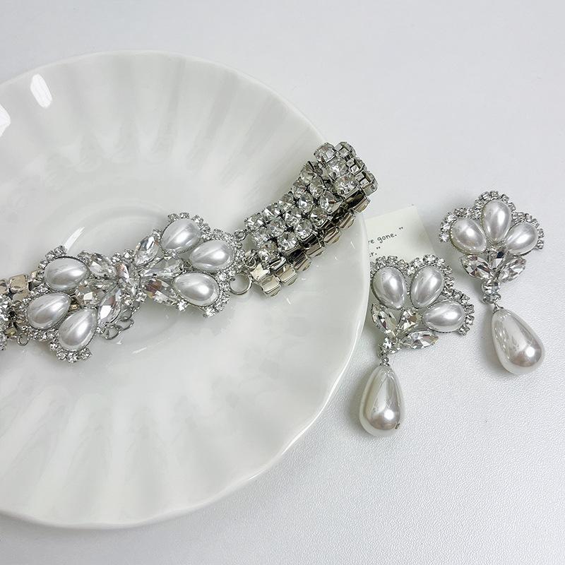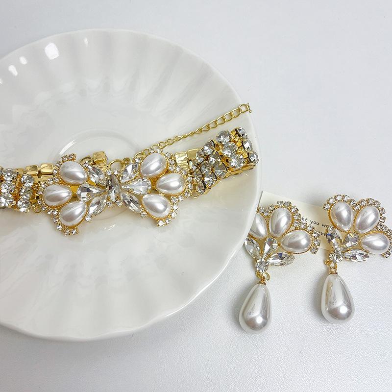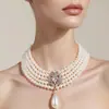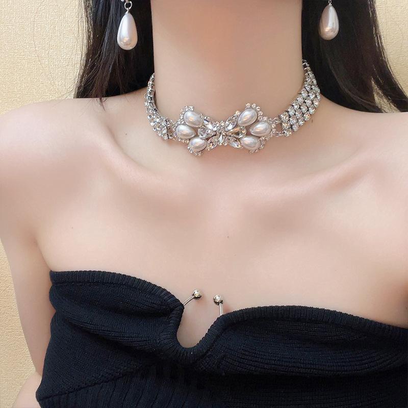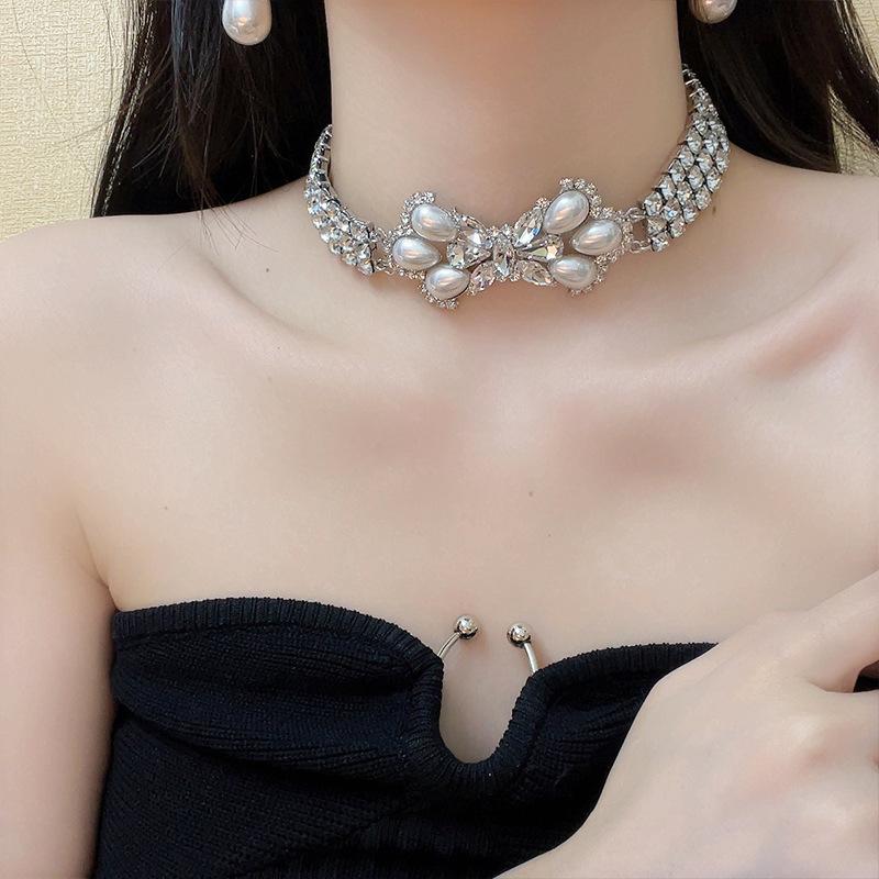 Europeu e Americano retro luxo elegante strass Pérola arco colar socialite estilo passarela personalidade gargantilha cadeia de clavícula