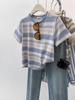 Gradiente Stripe Ombro Slim-fit Short-sleeved T-shirt Mulheres Verão Novo Design Nicho Meia-manga Curta Top
