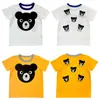 Roupa Infantil Verão Novo Estilo Desenho Animado Estampa Urso Preto Bordado Camiseta de Manga Curta para Meninos e Meninas
