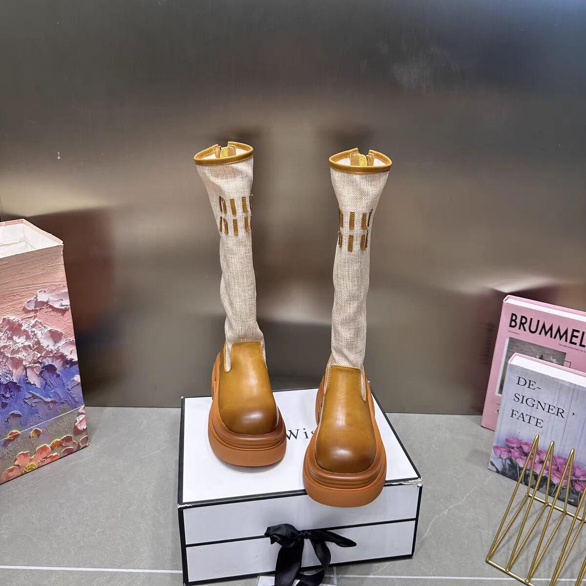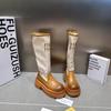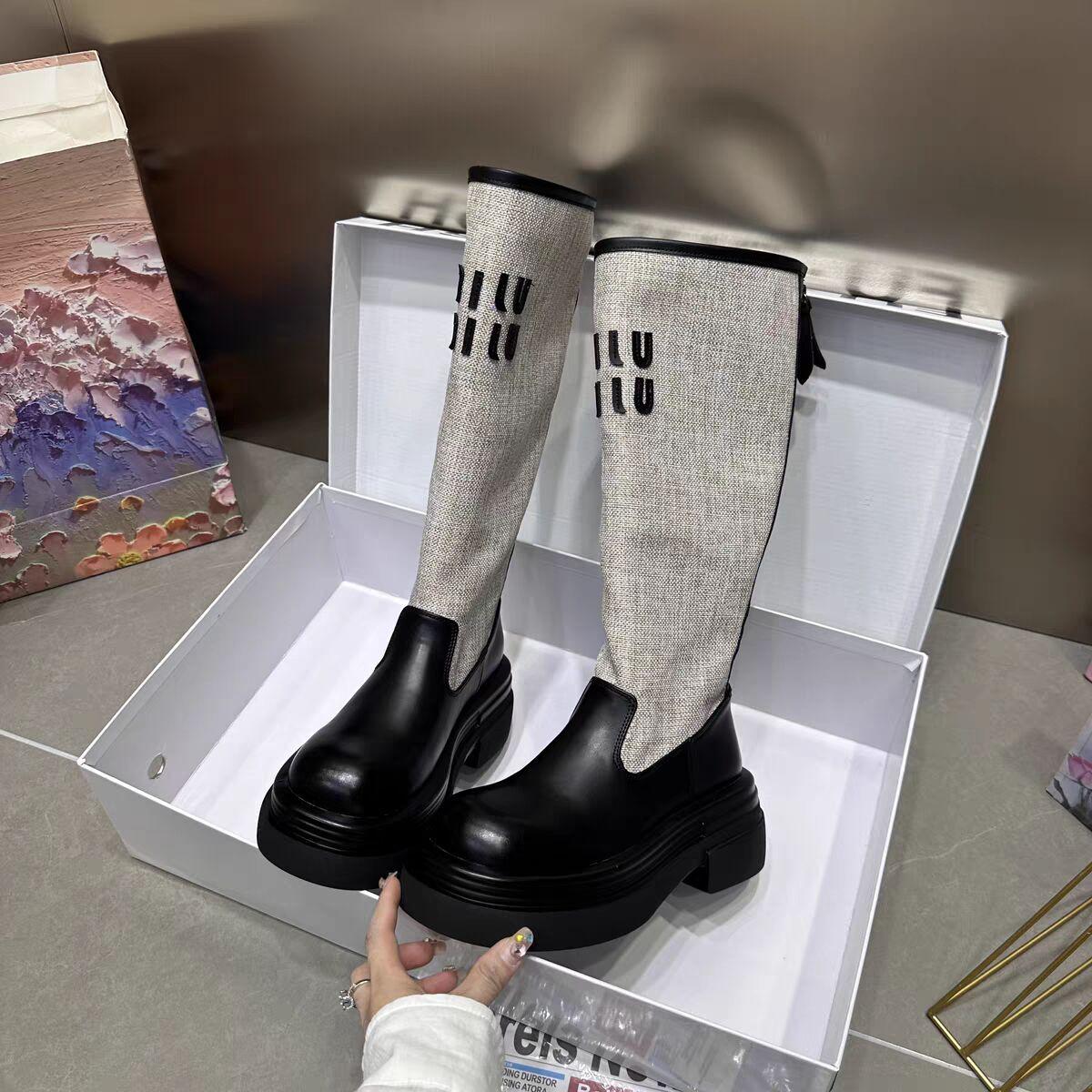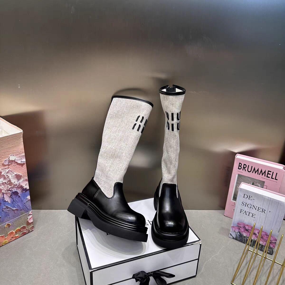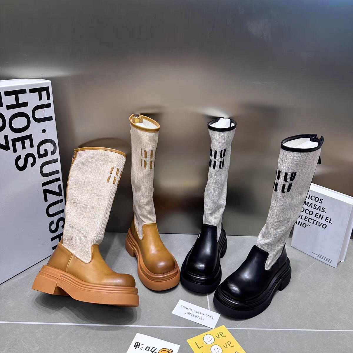2024 Novas Botas de Joelho Costurando Fundo Grosso Feminino All-match Correspondência de Cores Botas Finas da Moda Botas Longas Curtas Botas Simples