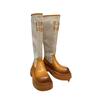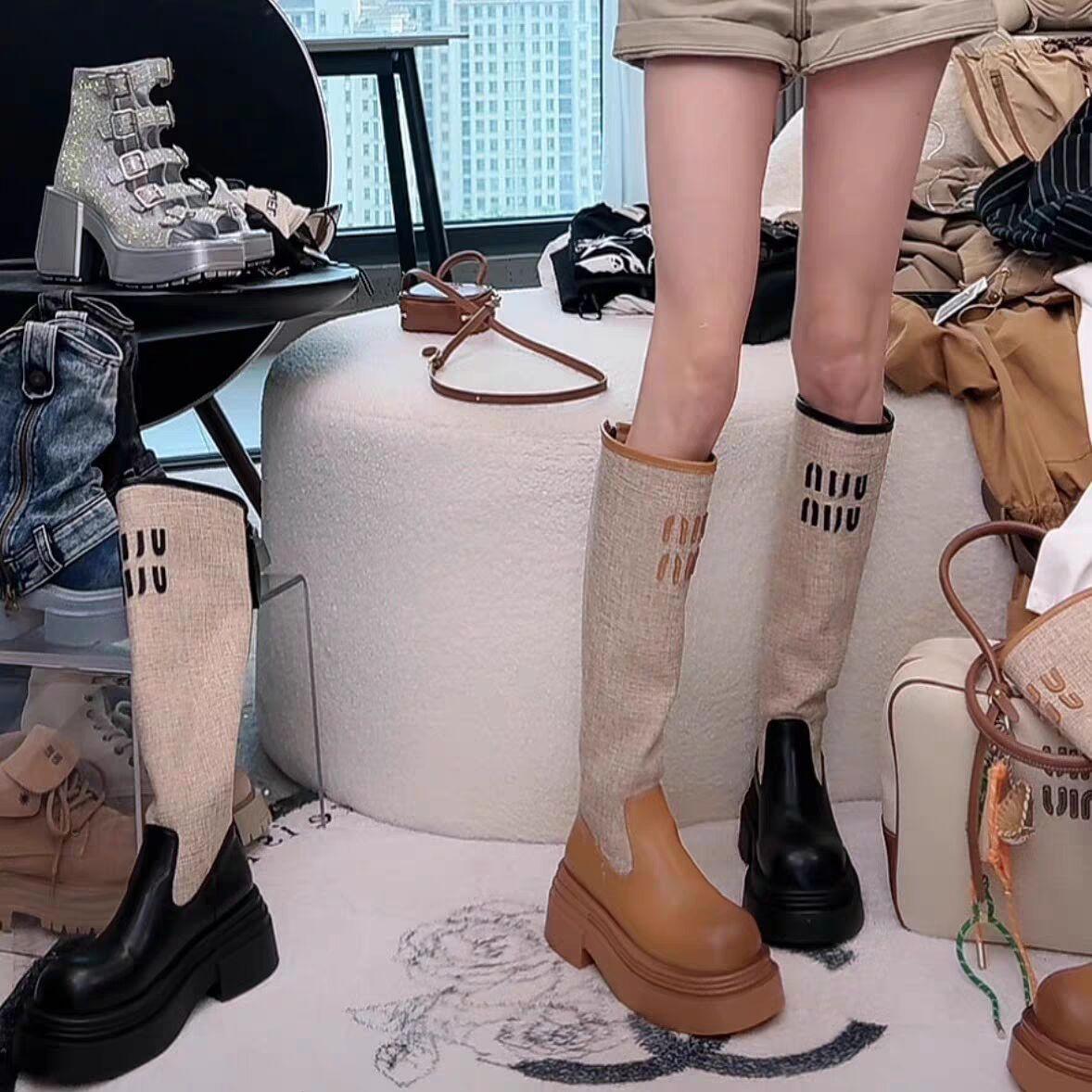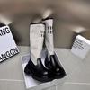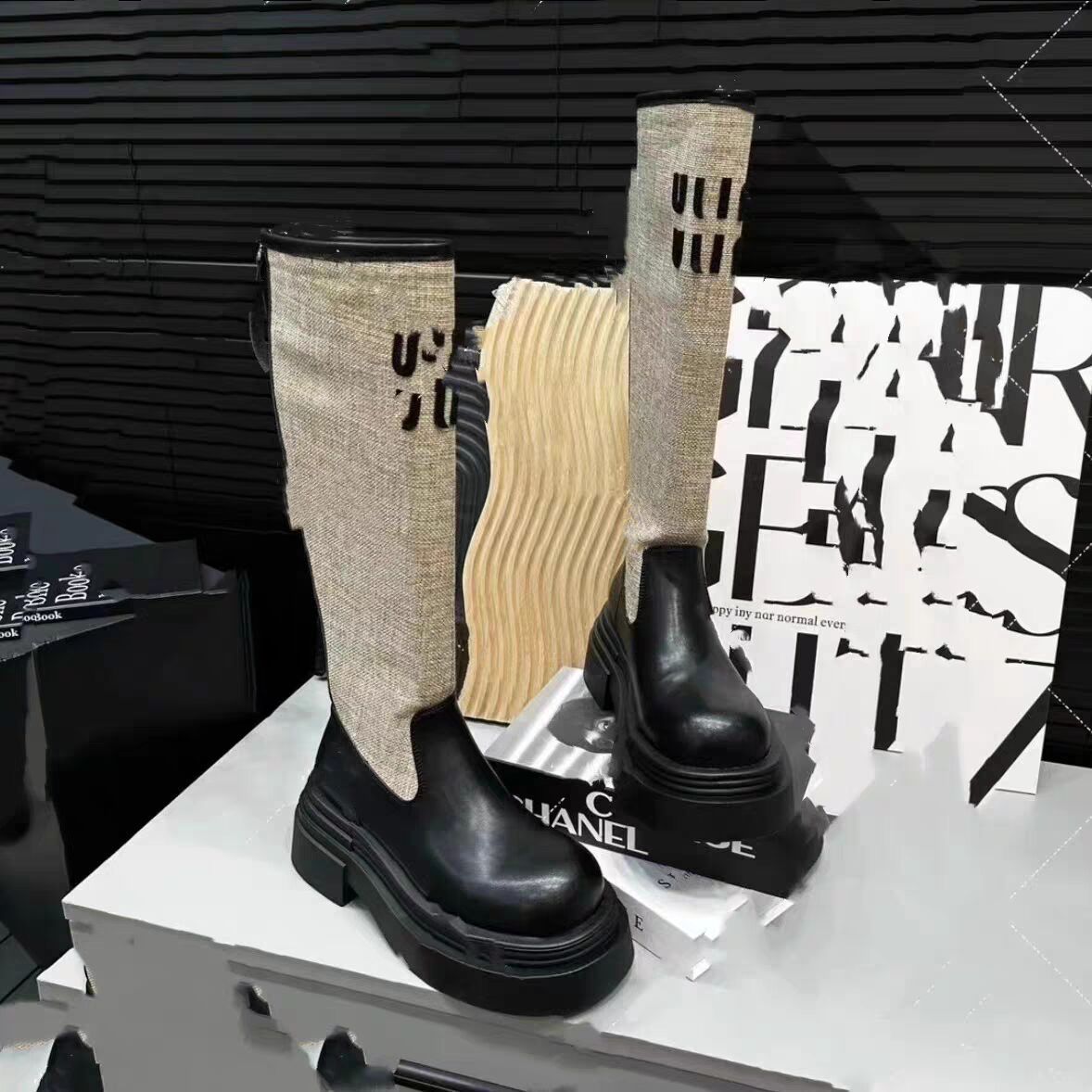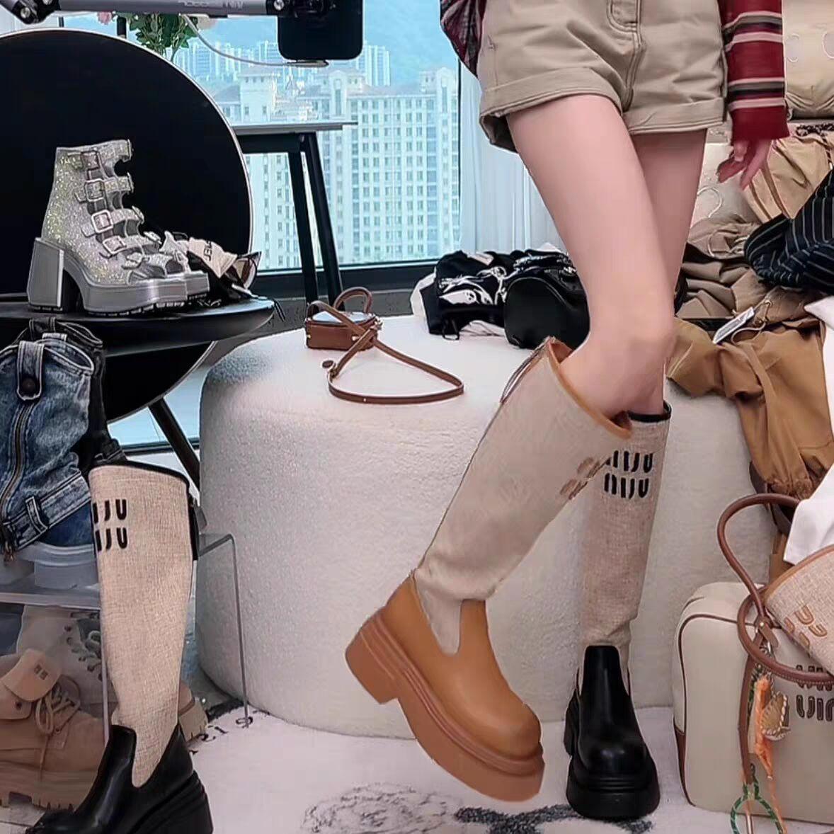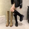 2024 Novas Botas de Joelho Costurando Fundo Grosso Feminino All-match Correspondência de Cores Botas Finas da Moda Botas Longas Curtas Botas Simples
